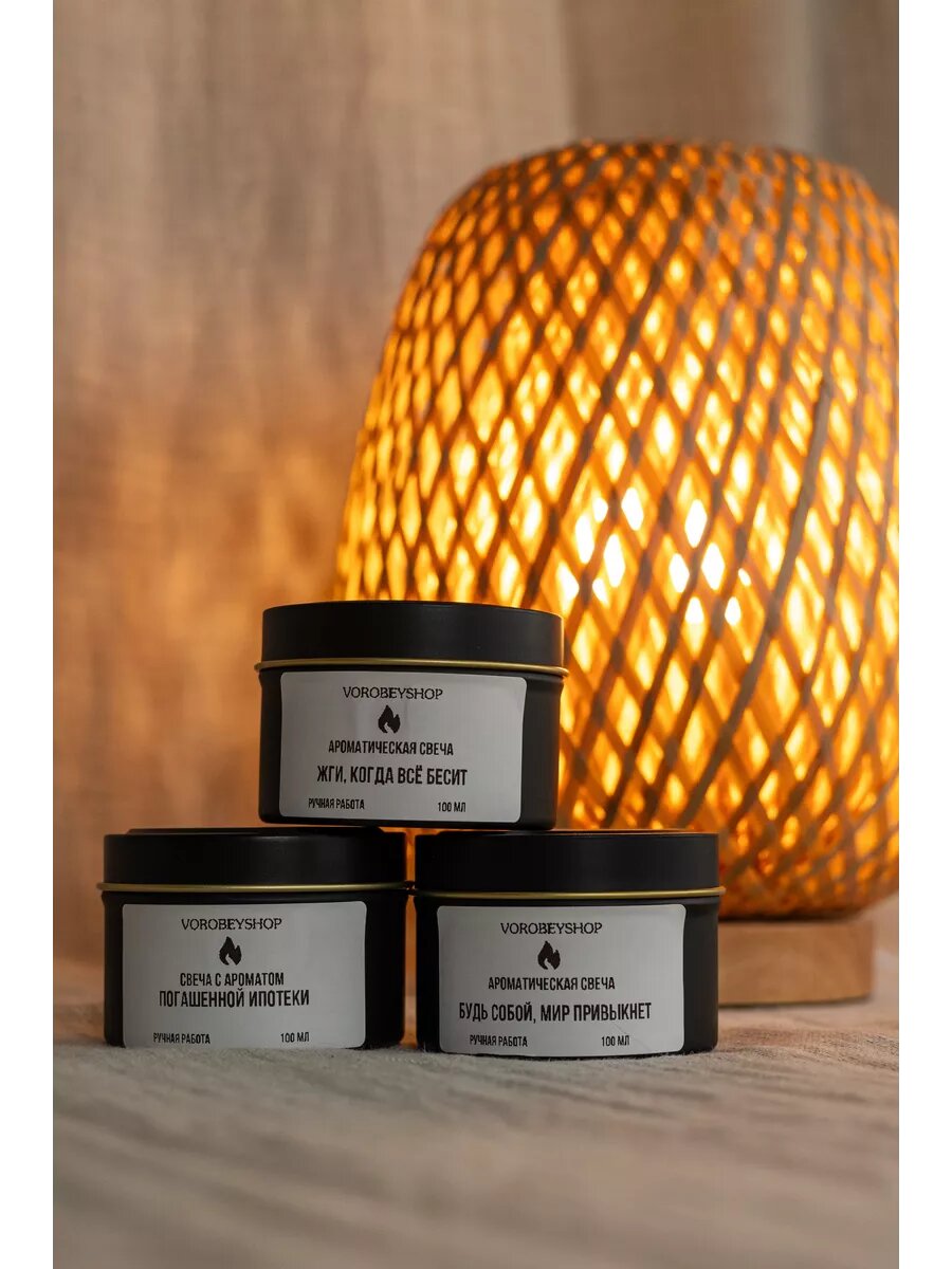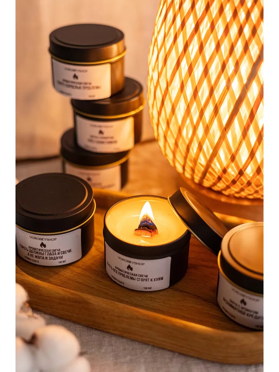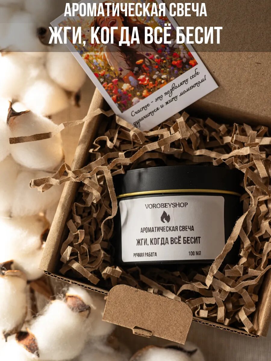 Ароматическая свеча Vorobeyshop "Жги, когда все бесит", ручная работа, 6x6 см интересное: