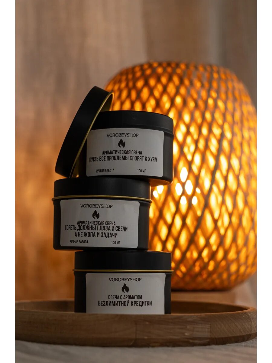 Ароматическая свеча "Пусть все проблемы сгорят к х. ям" от Vorobeyshop интересное: