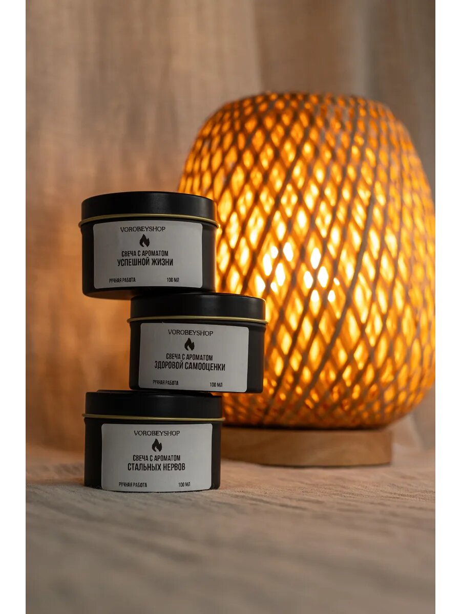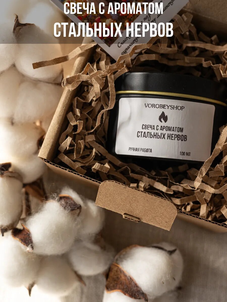 Ароматическая свеча Vorobeyshop "С ароматом стальных нервов", кокосовый воск интересное: