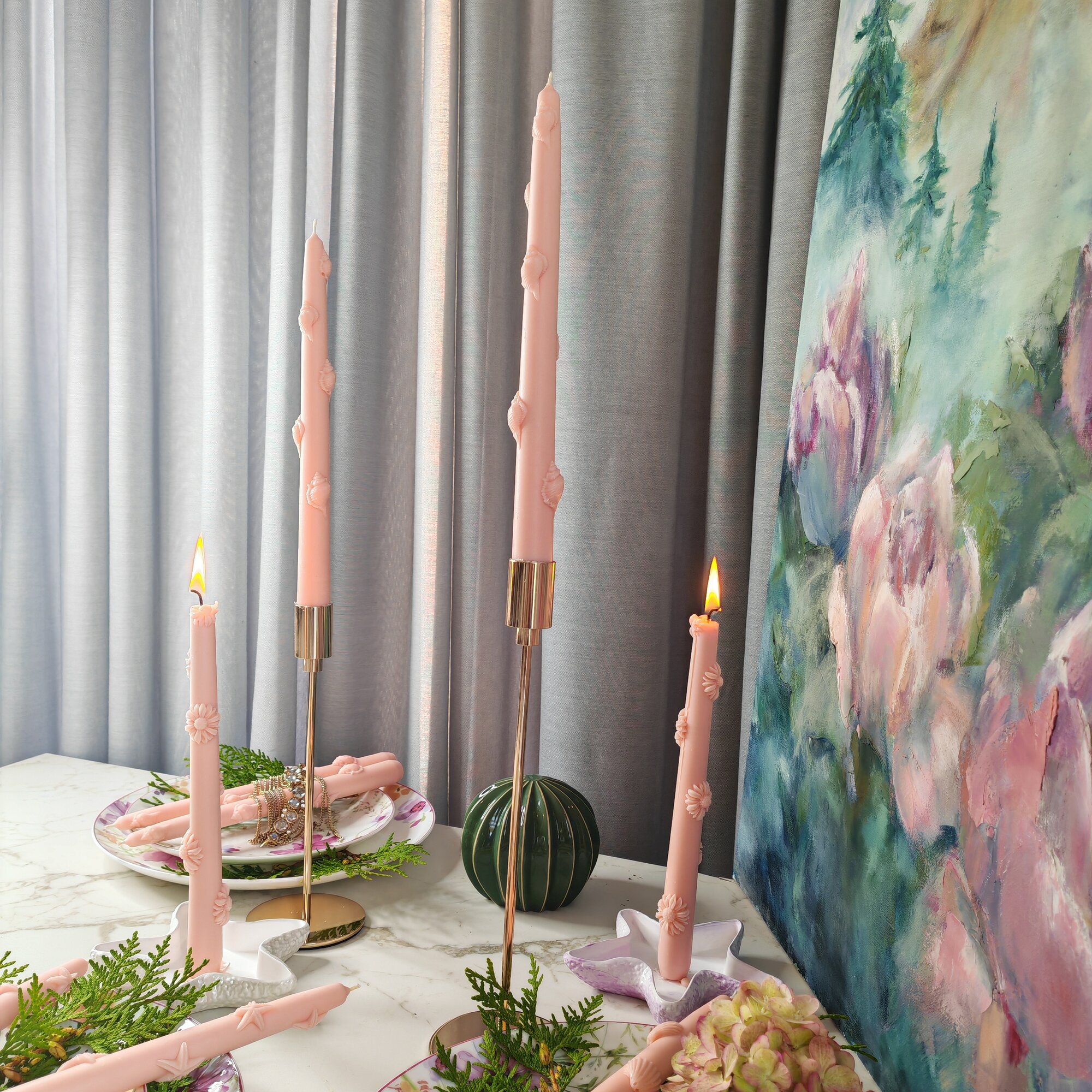 Купить Свечи Marshmallows Candles "Ракушки" в наборе из 2 штук, 25см, розовые