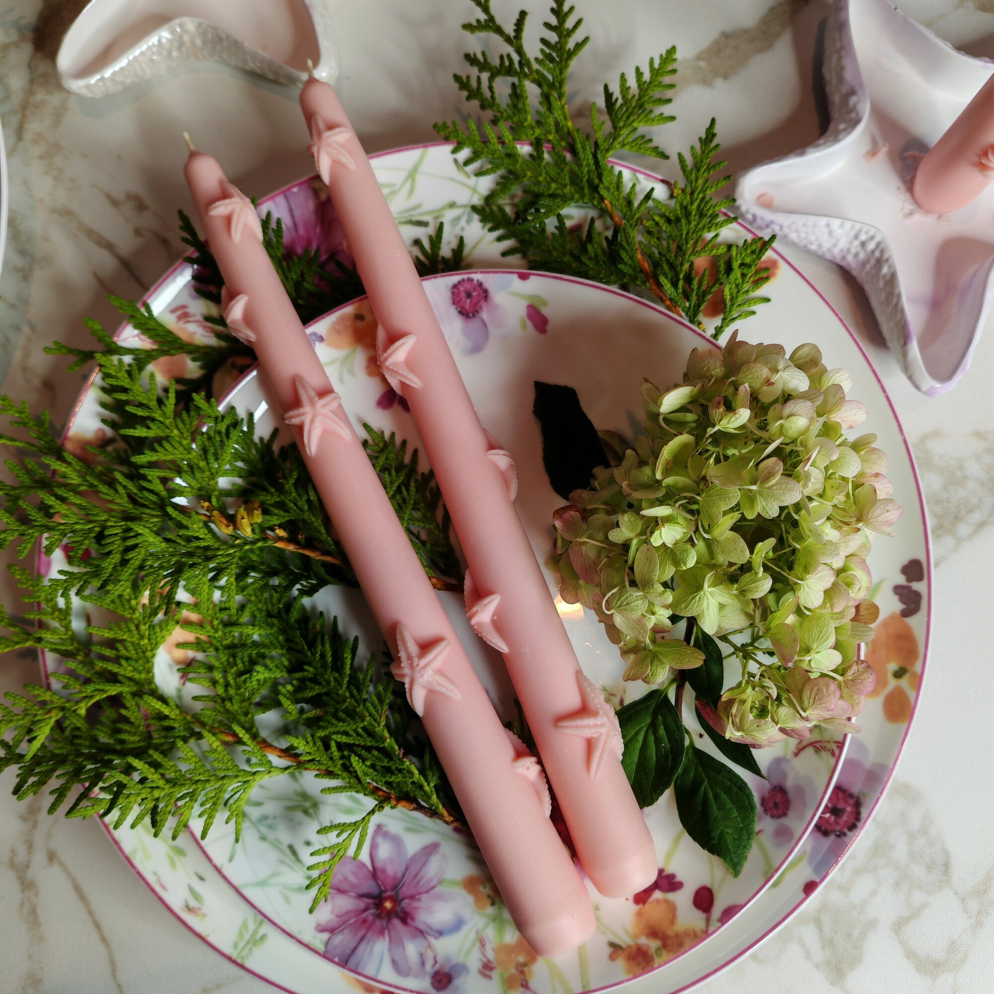 Свечи столовые, "Морские звезды", 2 штуки, 25 см, розовые интересное:
