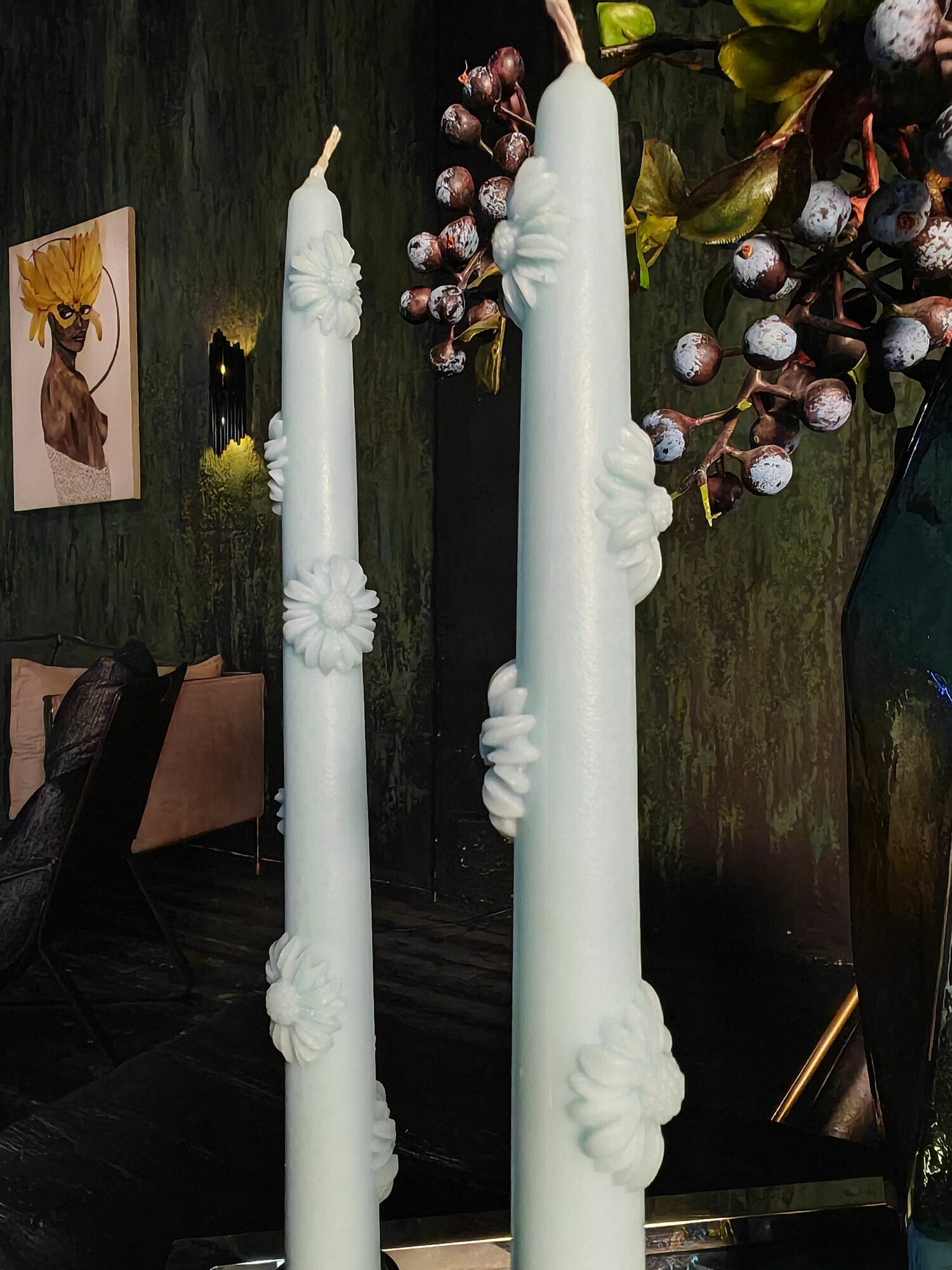 Свечи столовые, набор "Цветочный букет", 25см, 2 штуки, цвет мятный интересное: