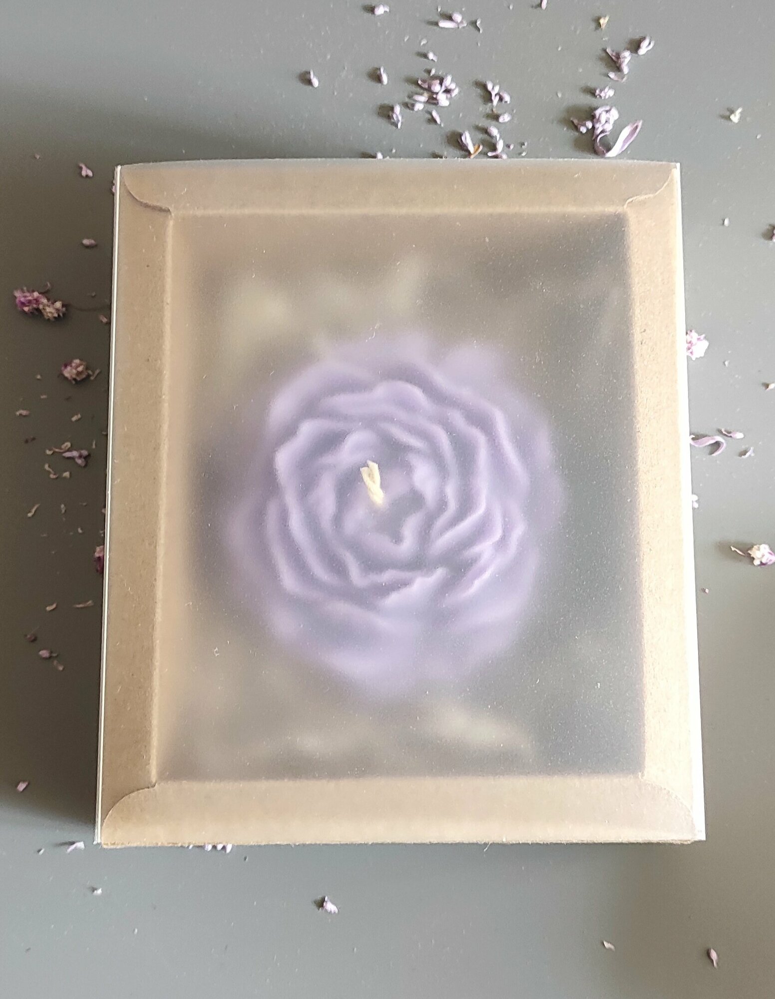 Купить Свеча ручной работы в форме цветка в подарочной упаковке/ Пион махровый сиреневый