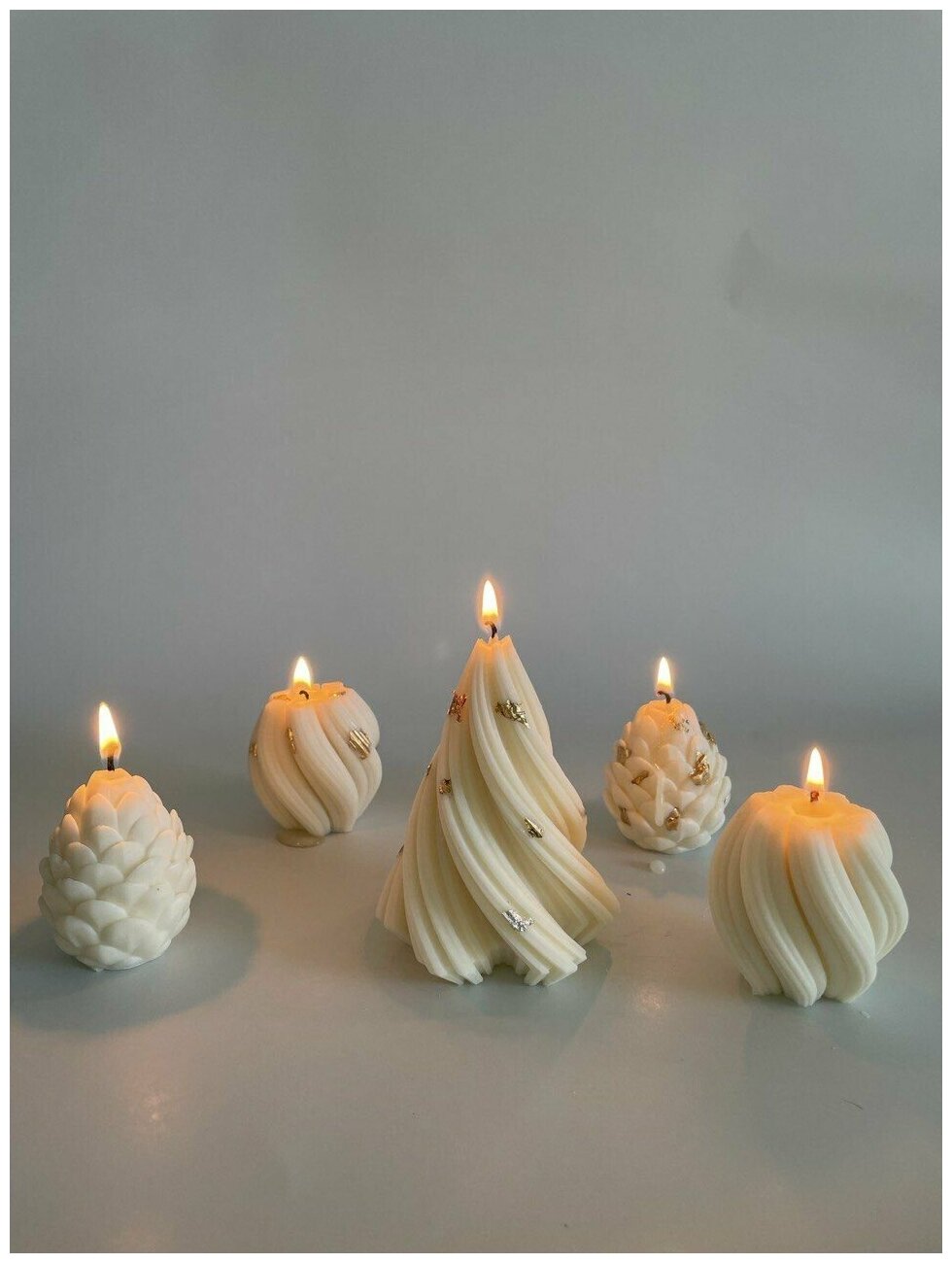 Свеча интерьерная из соевого воска в форме снежинка/ волна/ спираль, Candle Zen, белый, 6х5 см