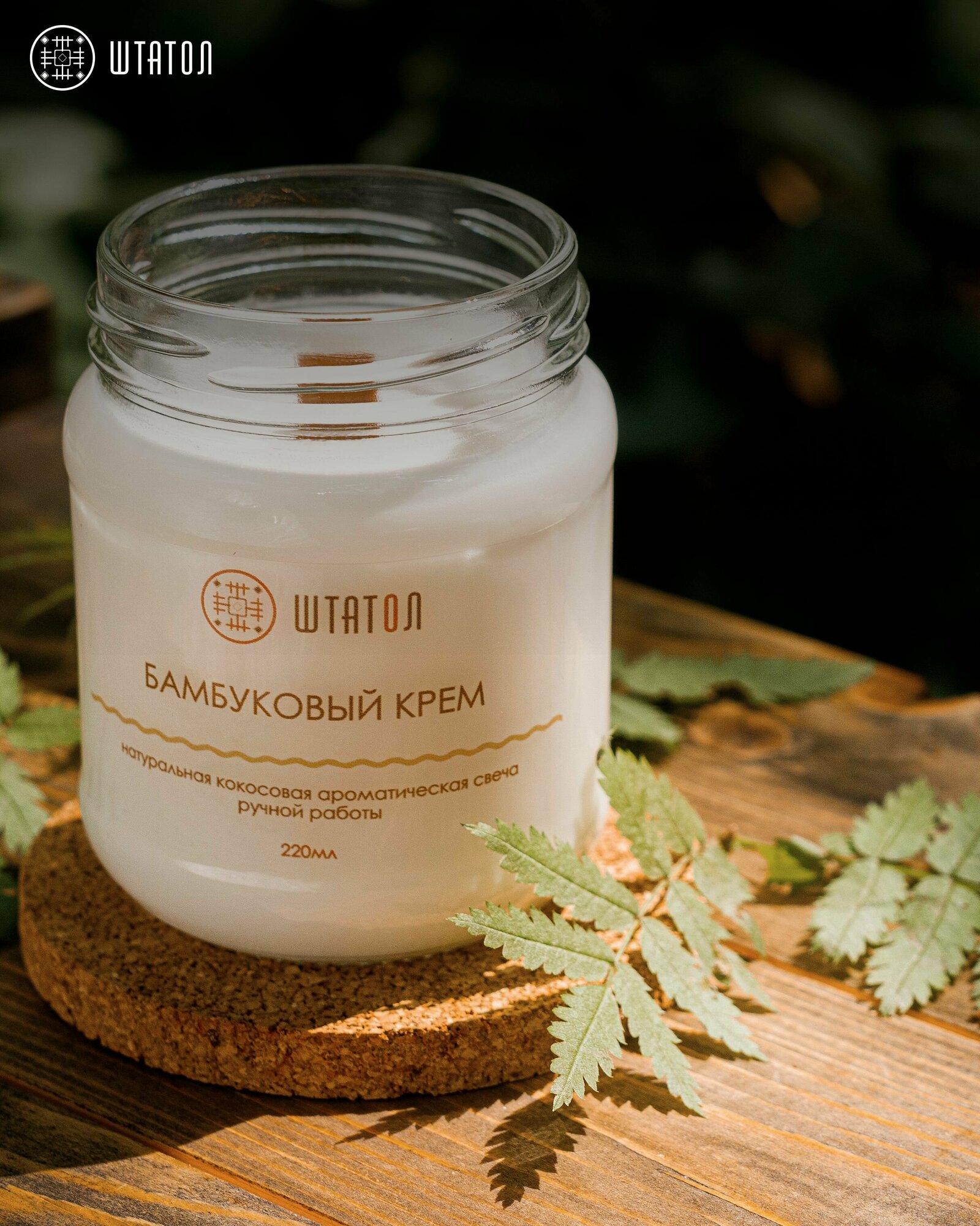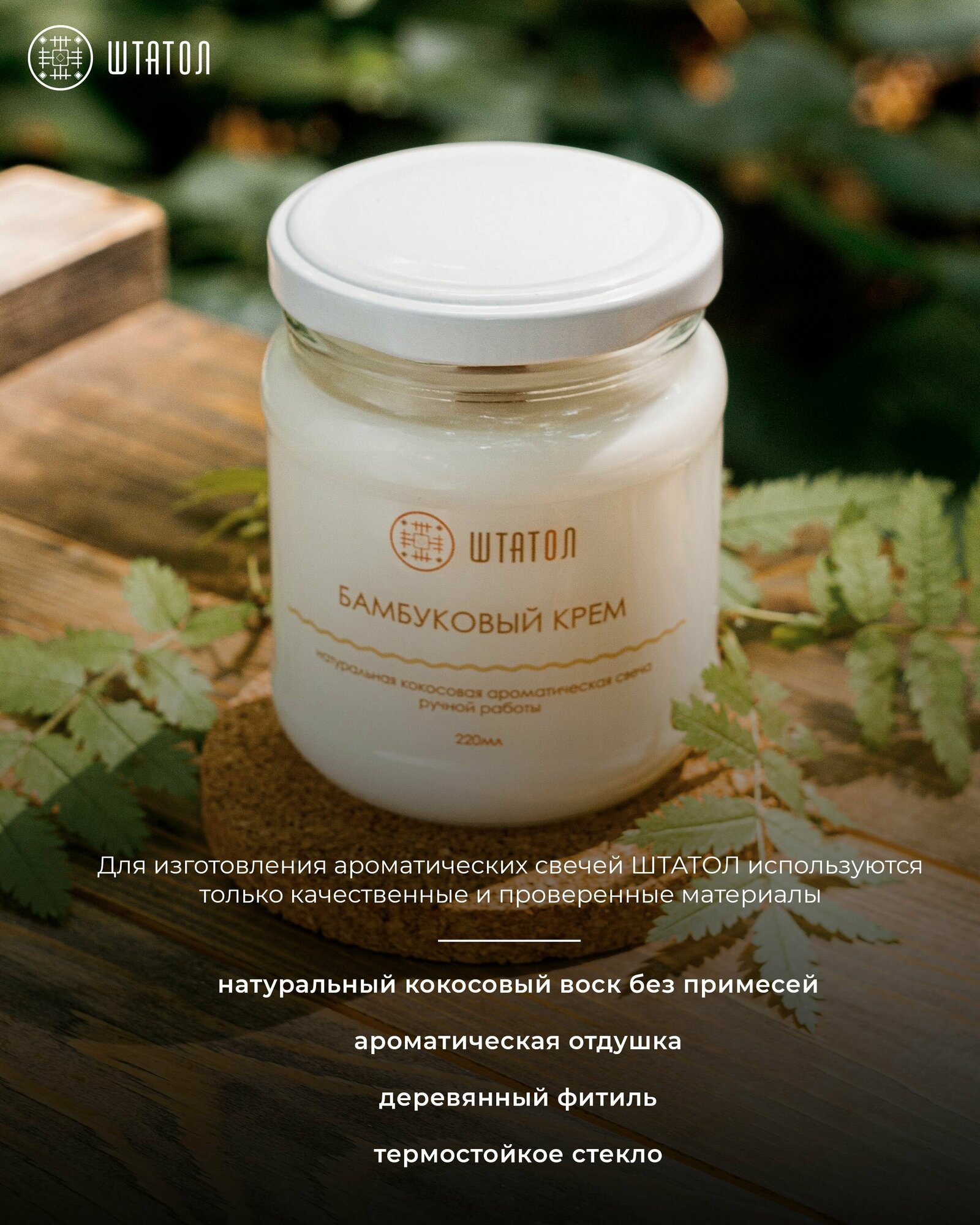 Купить "Бамбуковый крем" / свечи штатол с ароматом / свеча ароматическая с деревянным фитилем в стеклянной банке с крышкой 220 мл. / свечка аромавоск