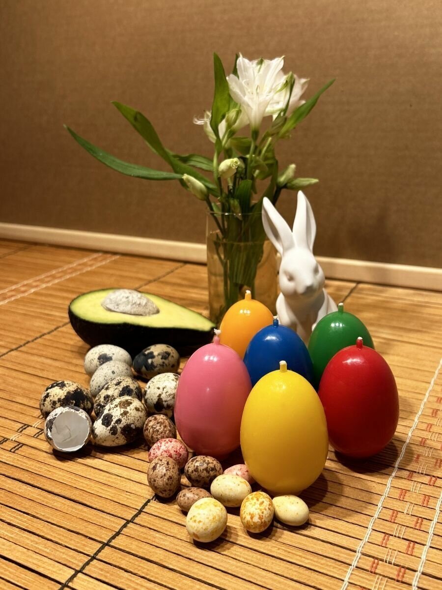 Свеча "Яйцо", ассорти цветов ГОСТ 48 гр. 6.5х4.1 см. 6 шт.