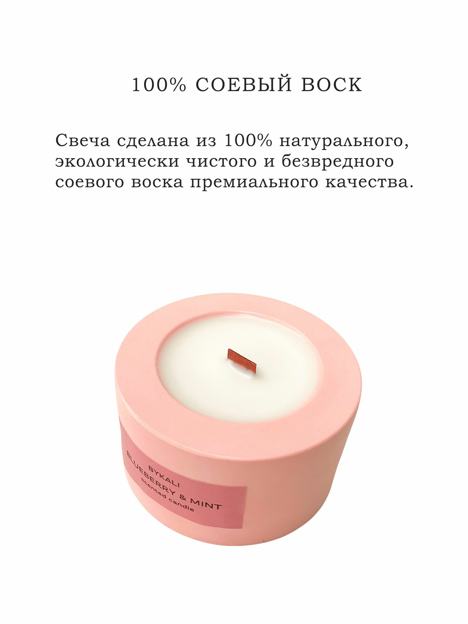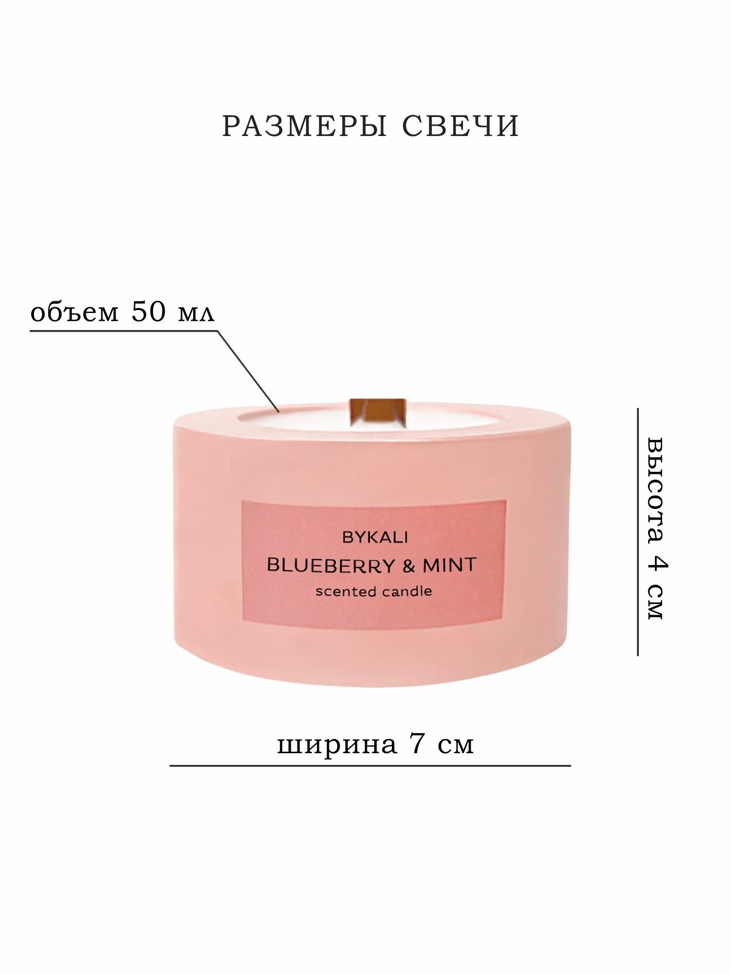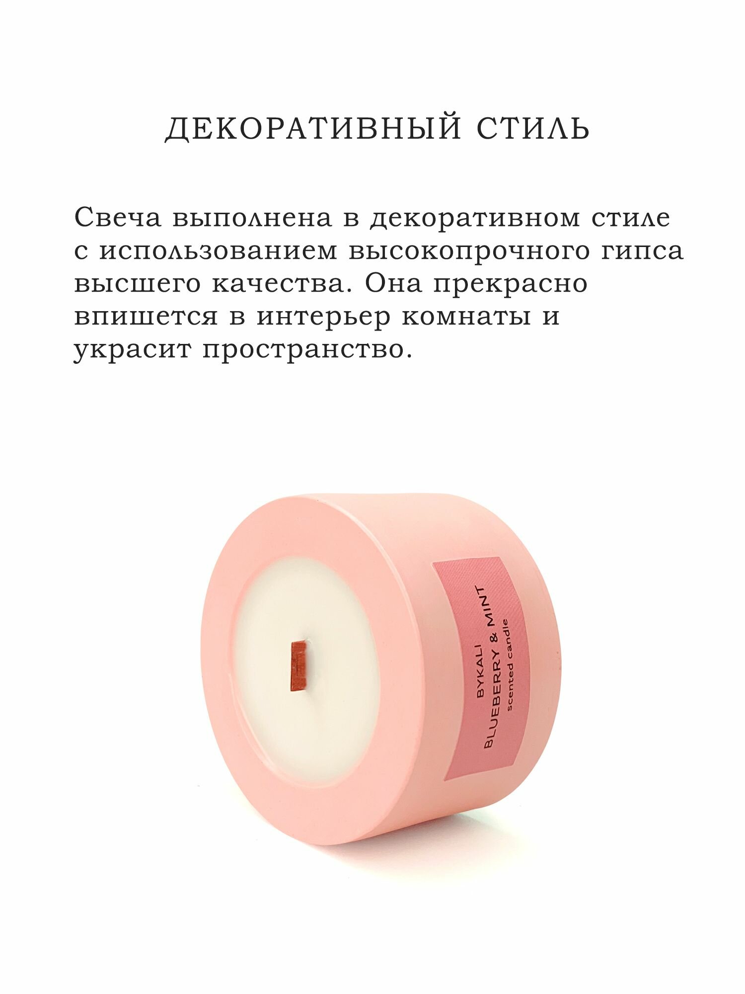 Купить Свеча ароматическая "BYKALI" Черника и Мята / с деревянным фитилем интерьерная в гипсе 50 мл