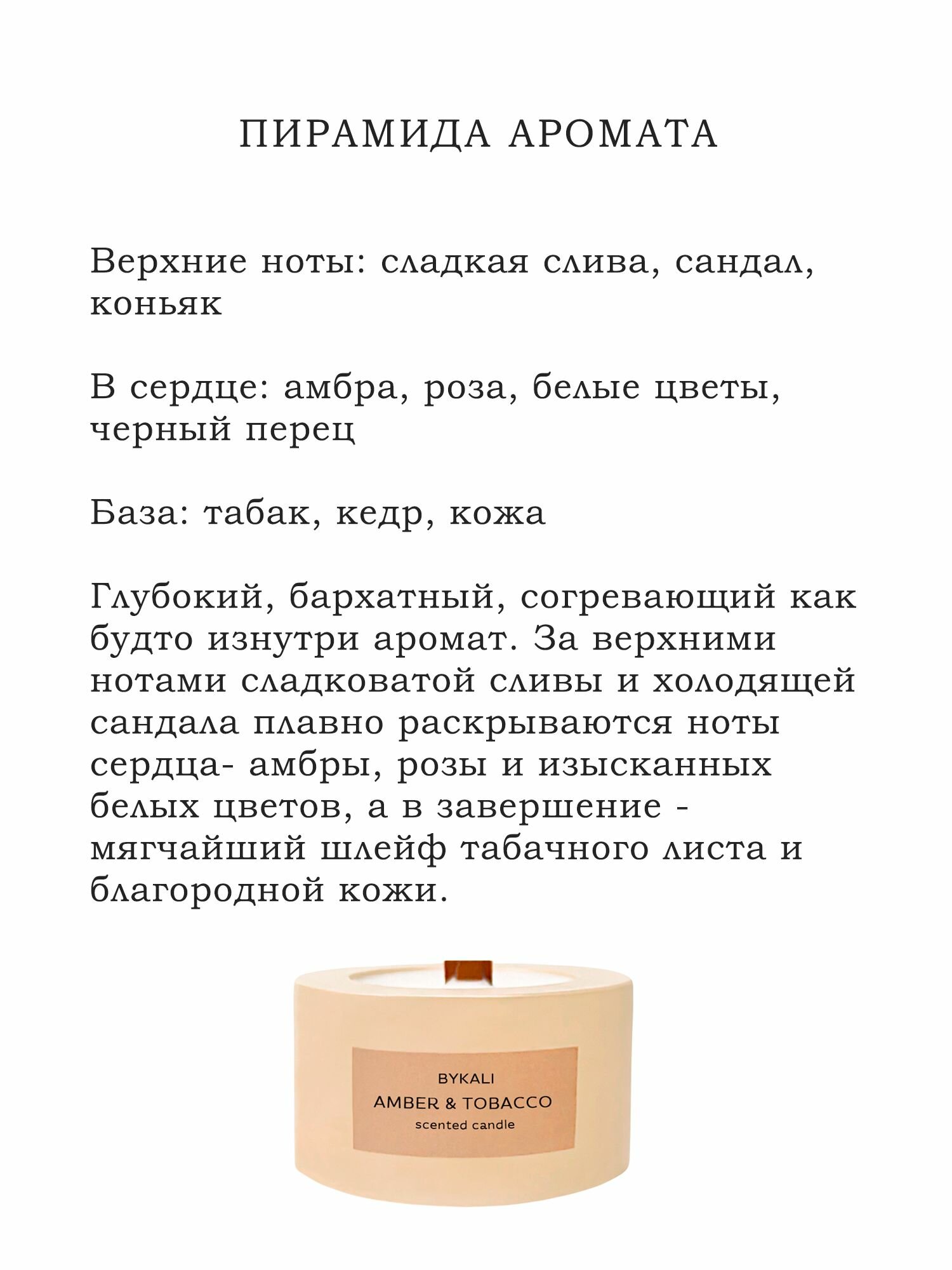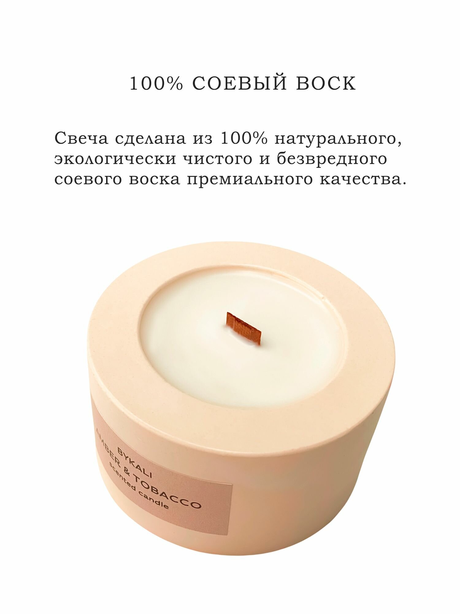 Купить Свеча ароматическая "BYKALI" Амбра и Табак / с деревянным фитилем интерьерная в гипсе 50 мл