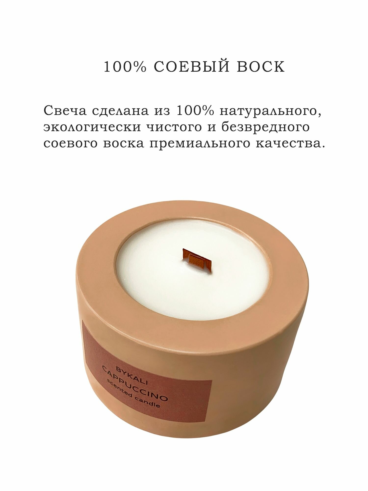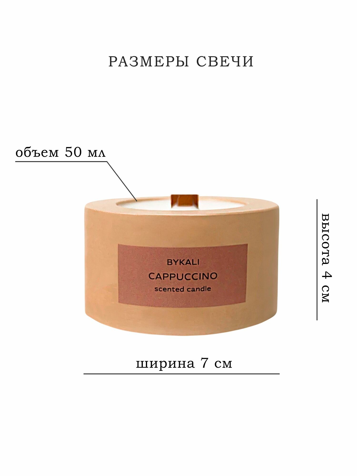 Купить Свеча ароматическая "BYKALI" Капучино / с деревянным фитилем интерьерная в гипсе 50 мл