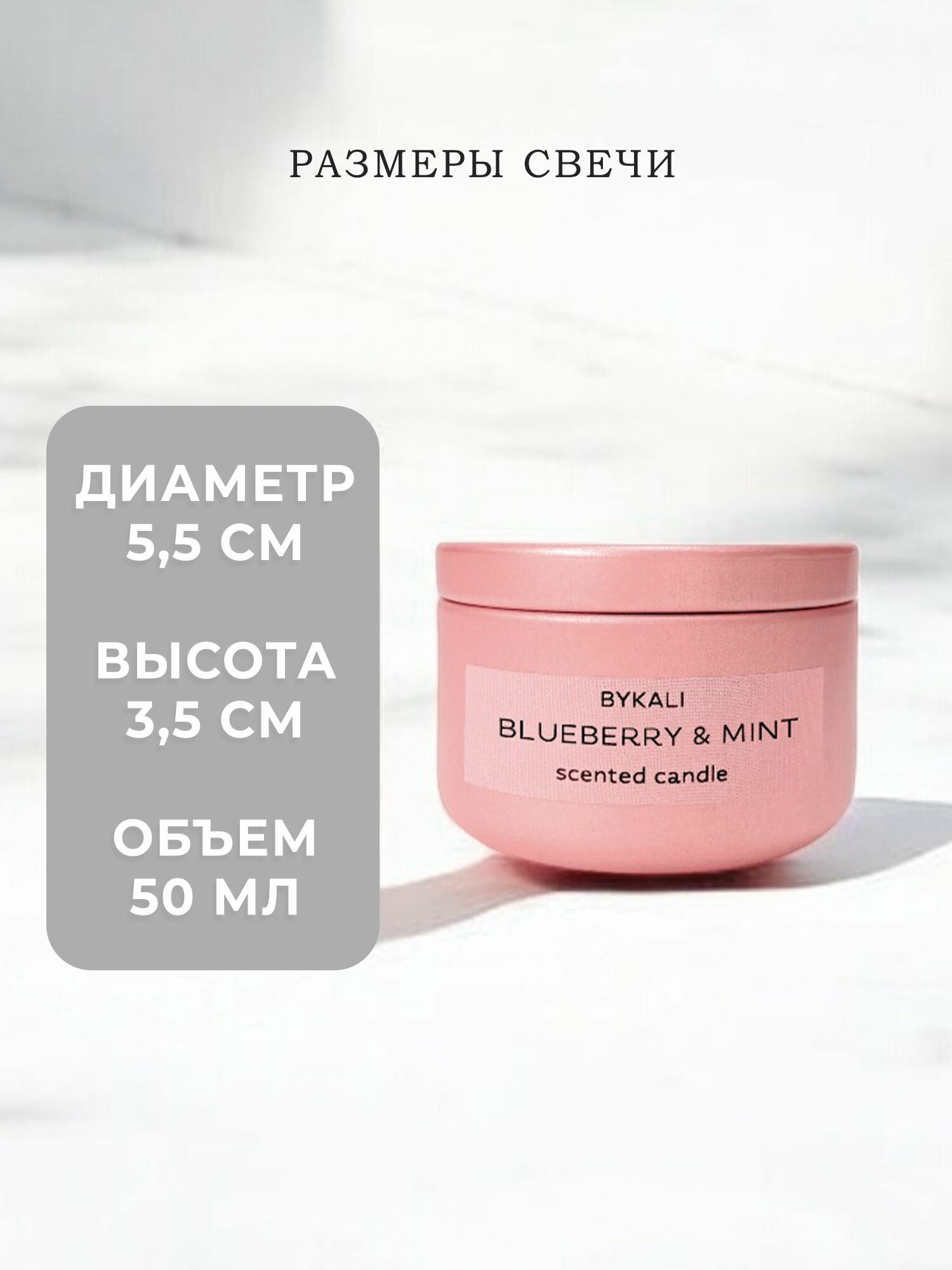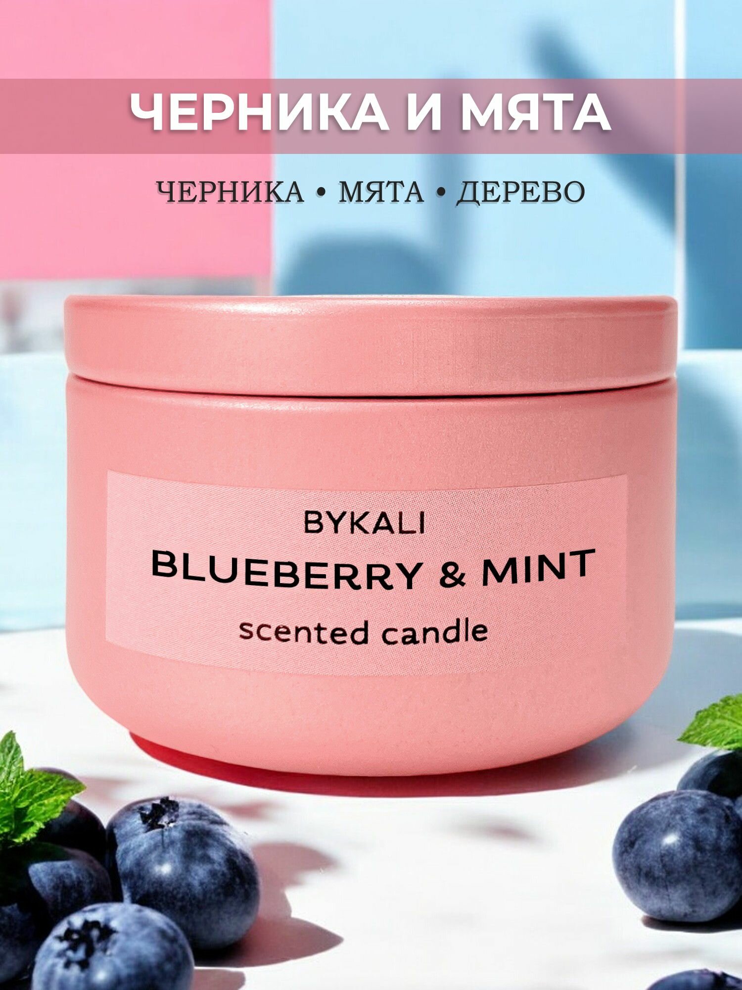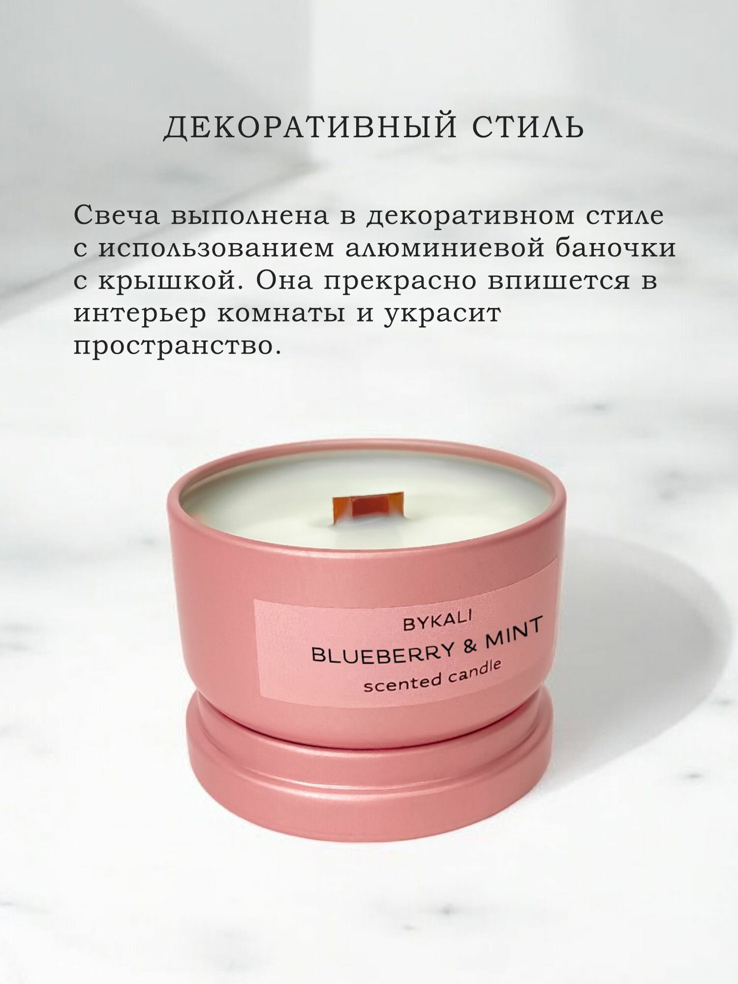 Купить Свеча ароматическая "BYKALI" Черника и Мята - с деревянным фитилем в банке с крышкой 50 мл