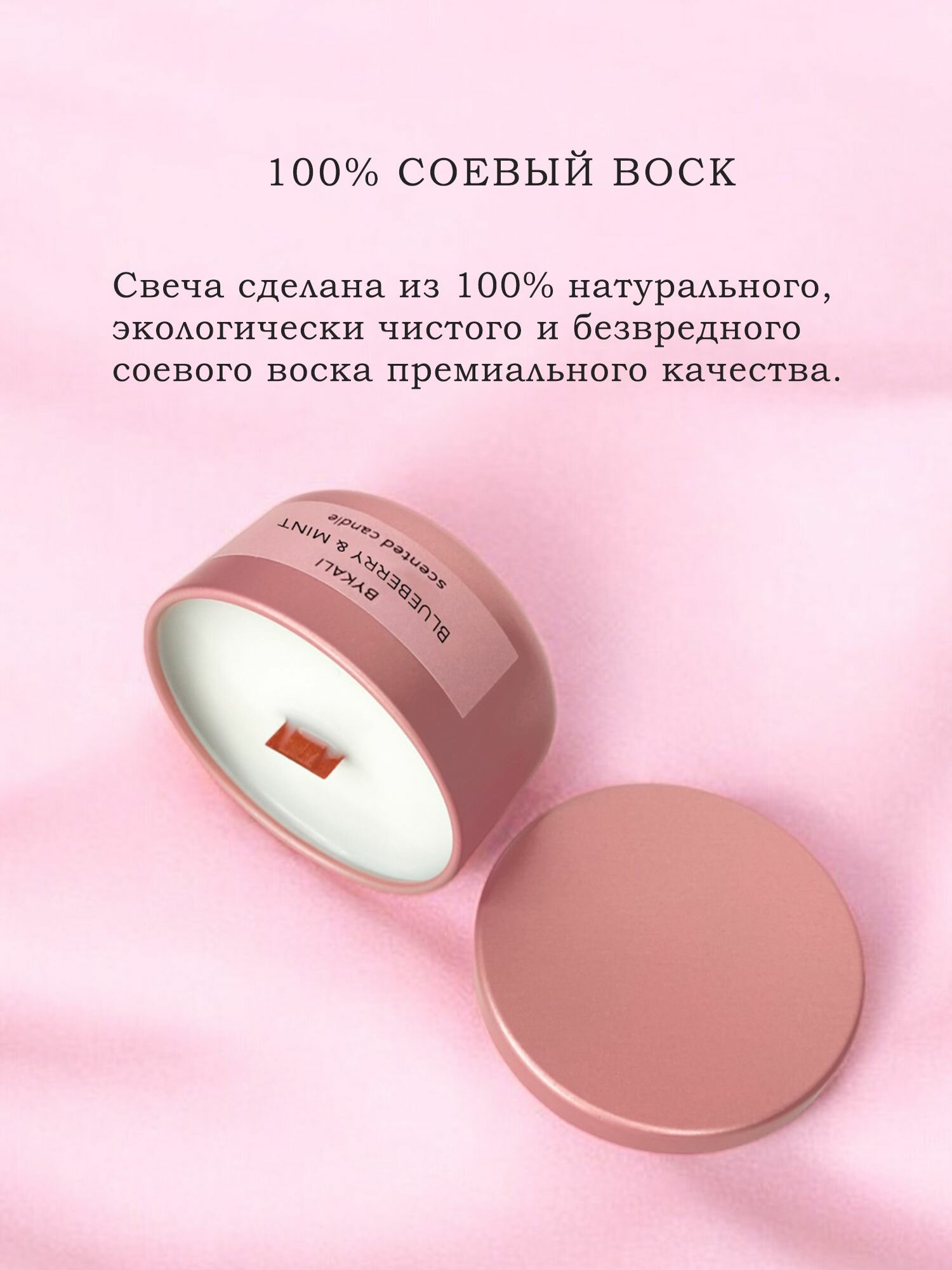 Свеча ароматическая "BYKALI" Розовое шампанское - с деревянным фитилем в банке с крышкой 50 мл