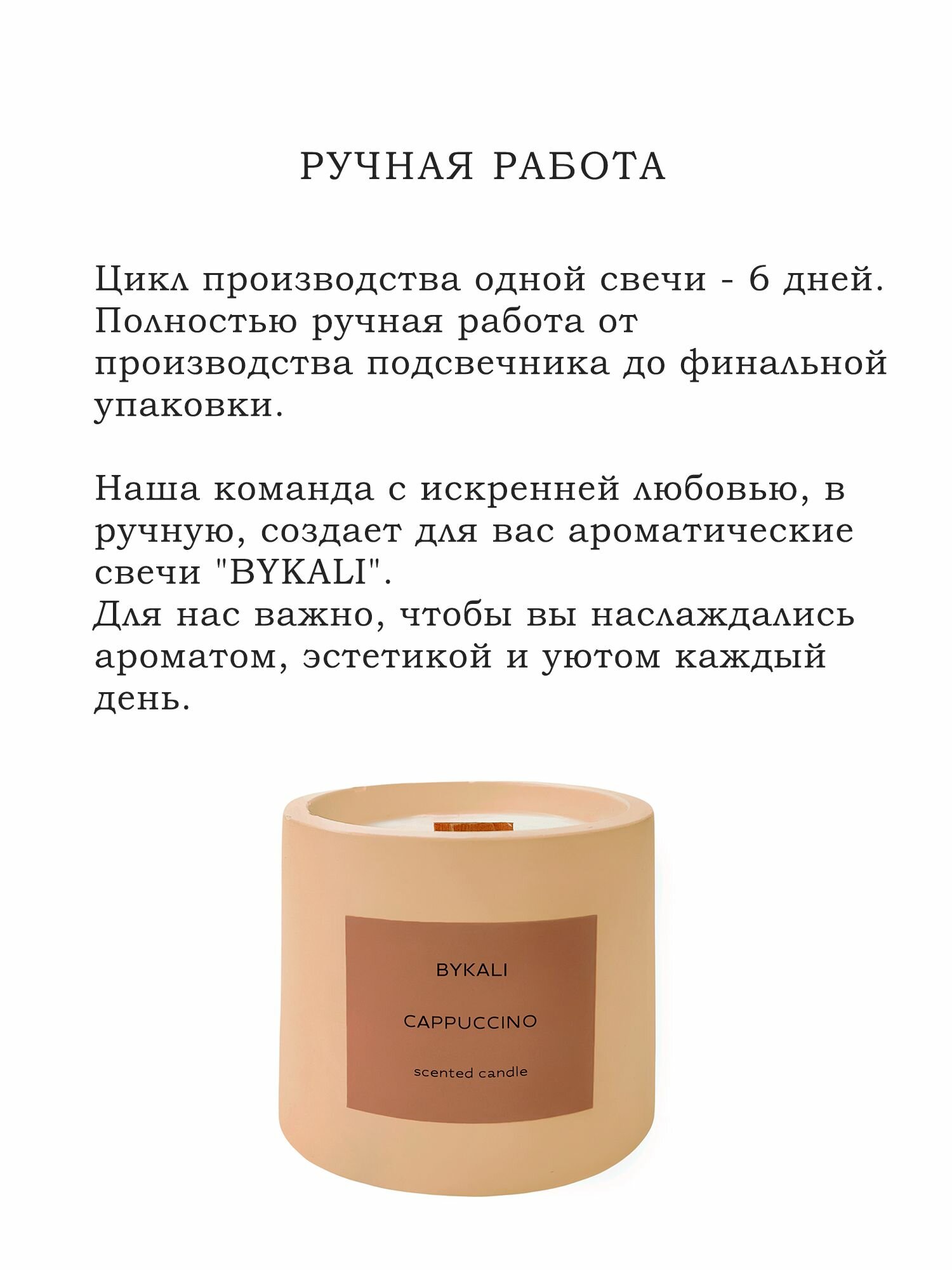 Купить Свеча ароматическая "BYKALI" Капучино / с деревянным фитилем интерьерная в гипсе 120 мл