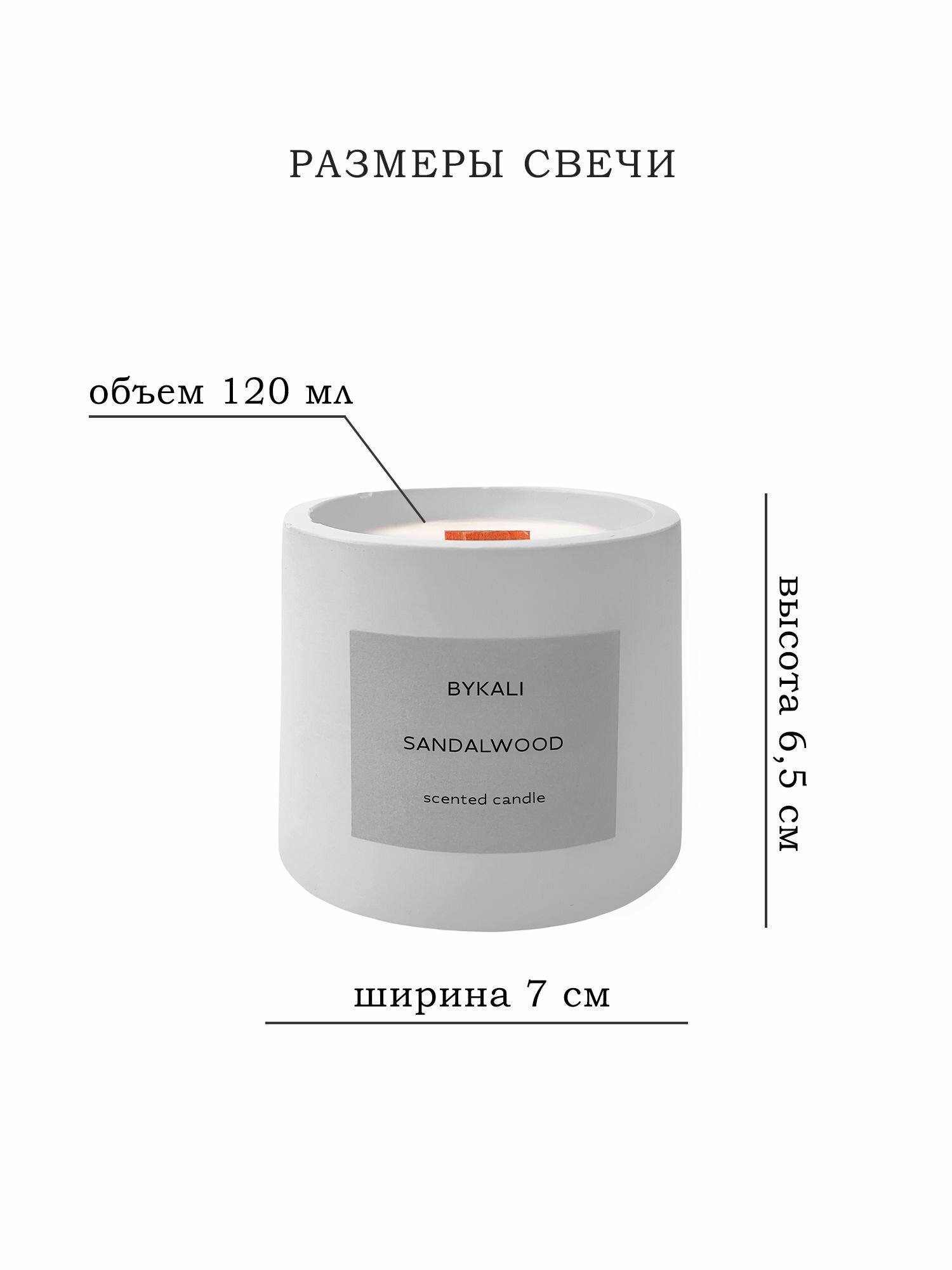 Купить Свеча ароматическая "BYKALI" Сандаловое дерево / с деревянным фитилем интерьерная в гипсе 120 мл