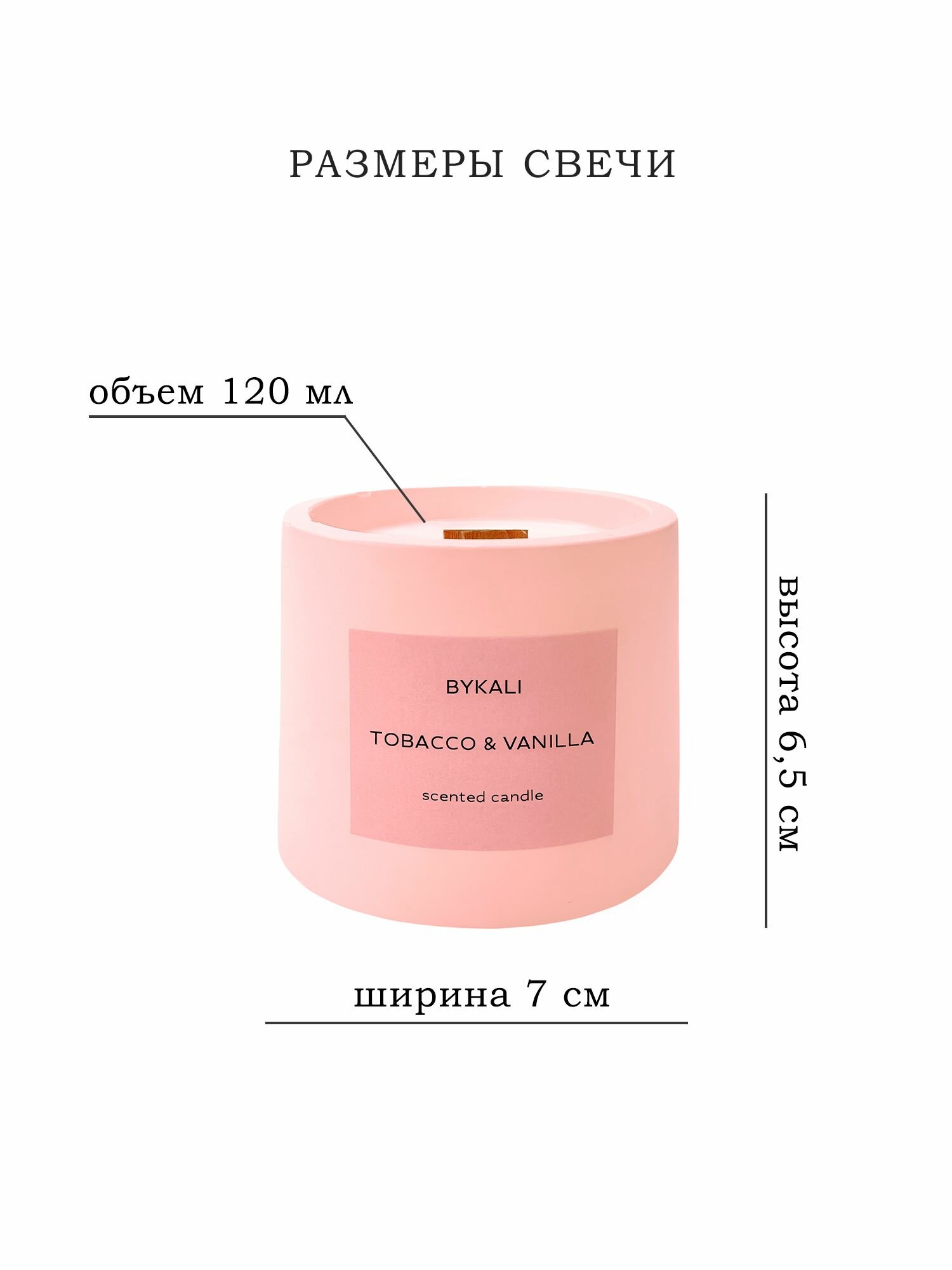 Купить Свеча ароматическая "BYKALI" Табак и ваниль / с деревянным фитилем интерьерная в гипсе 120 мл