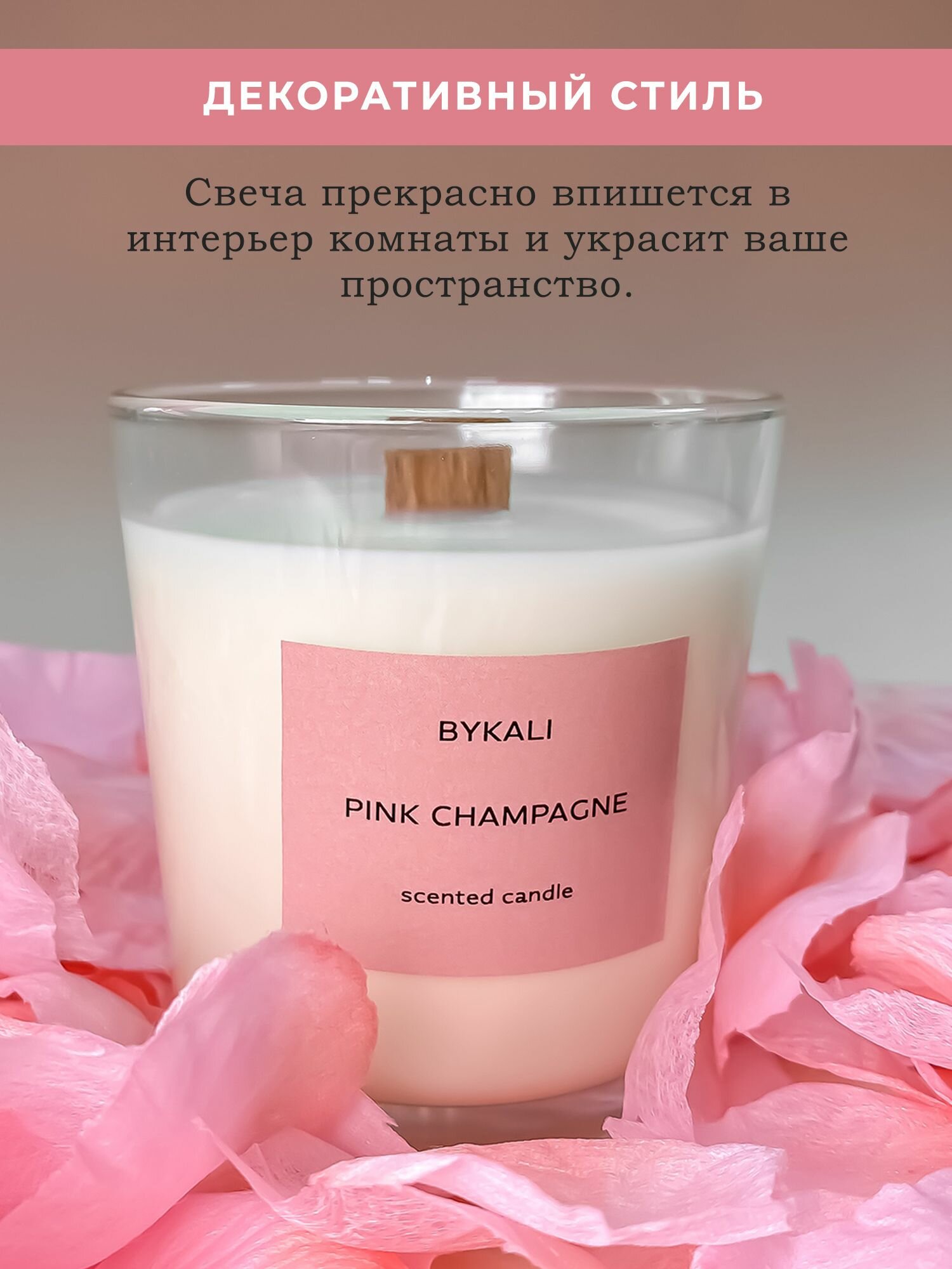 Купить Свеча ароматическая "BYKALI" Розовое шампанское - с деревянным фитилем в стакане с крышкой 200 мл