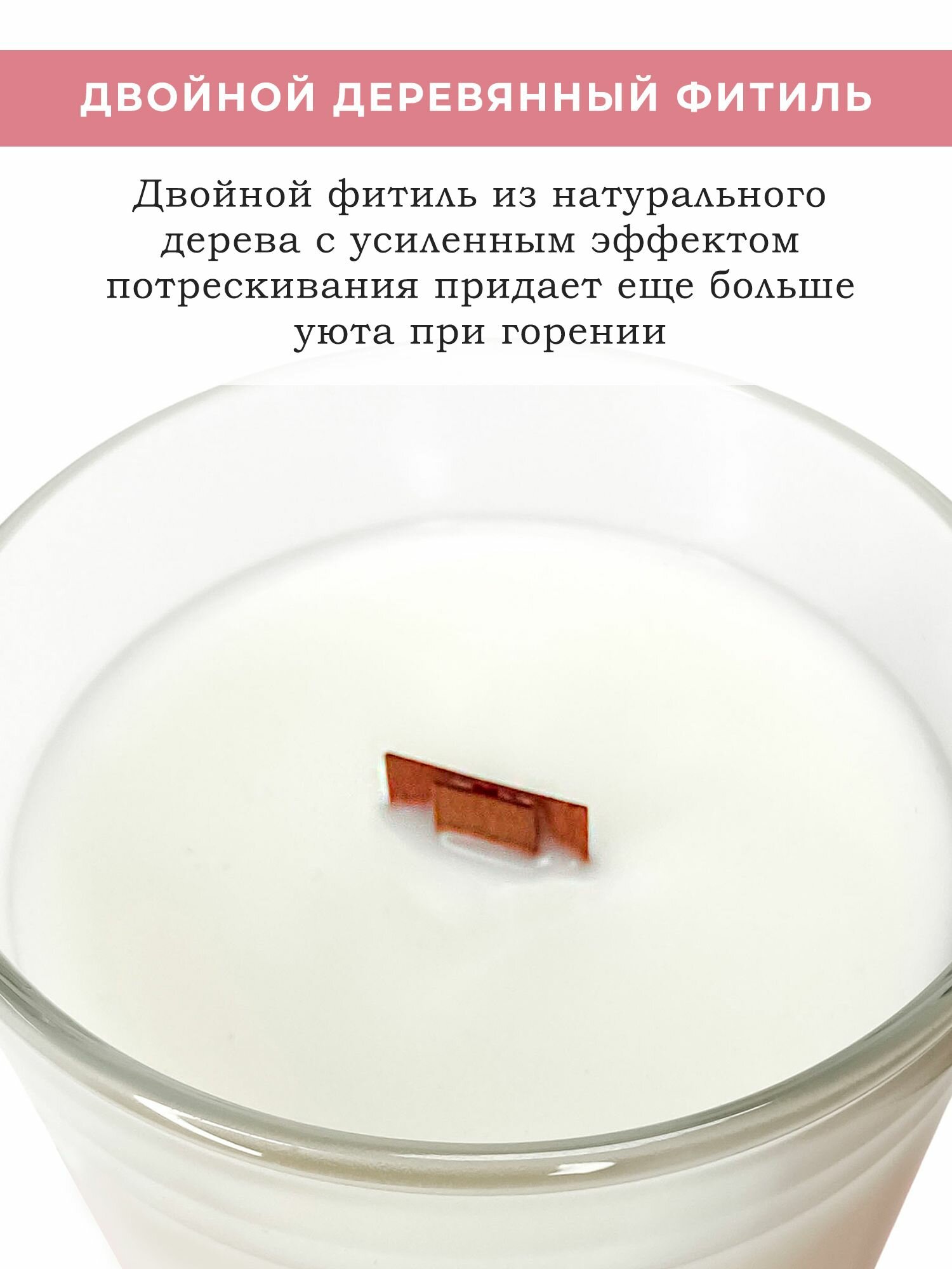 Свеча ароматическая "BYKALI" Розовое шампанское - с деревянным фитилем в стакане с крышкой 100мл