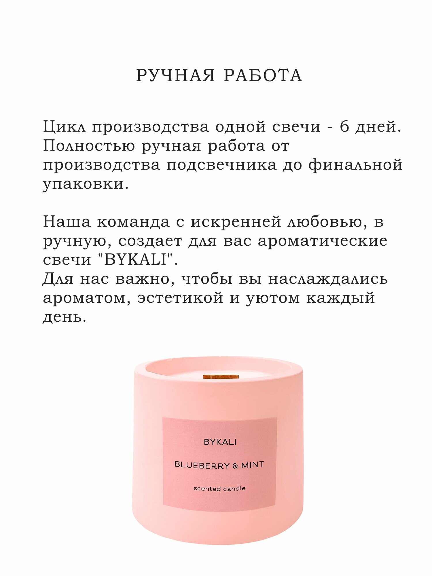 Купить Свеча ароматическая "BYKALI" Черника и Мята / с деревянным фитилем интерьерная в гипсе 120 мл