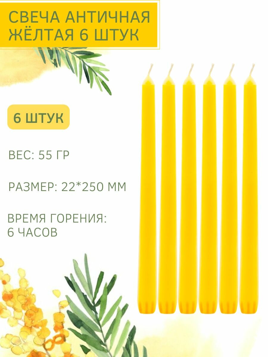 Свеча Античная/Столбик/Хозяйственная/Столовая 22х250 мм, желтая, 6 ч, 6 штук интересное: