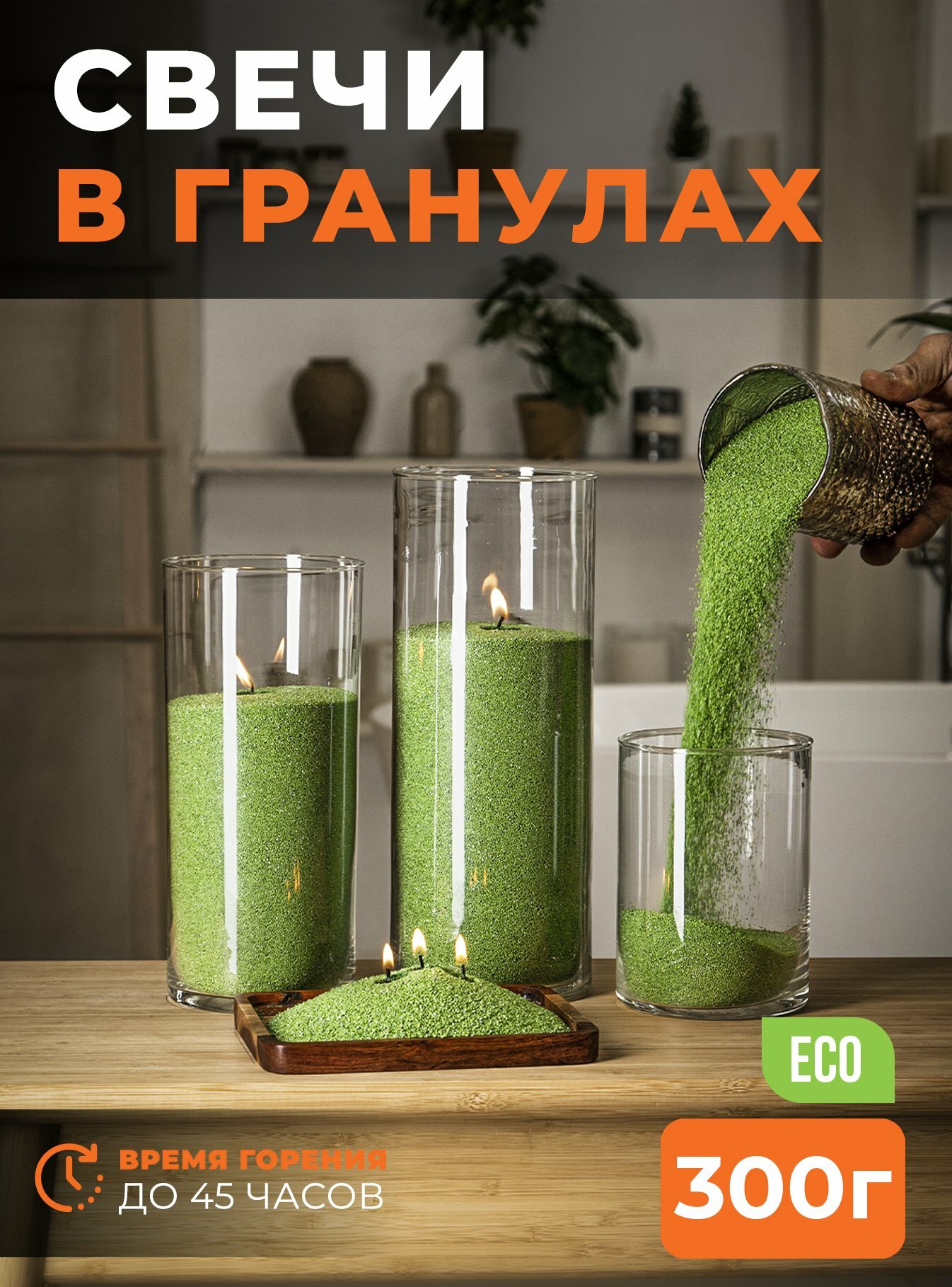 Свечи не ароматические насыпные "RosCandles" зеленые, 300г воска + фитиль 0.6м интересное: