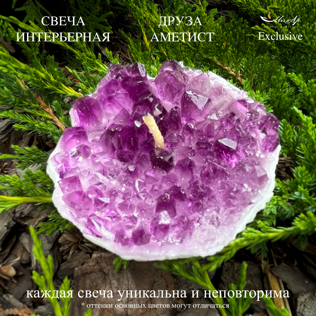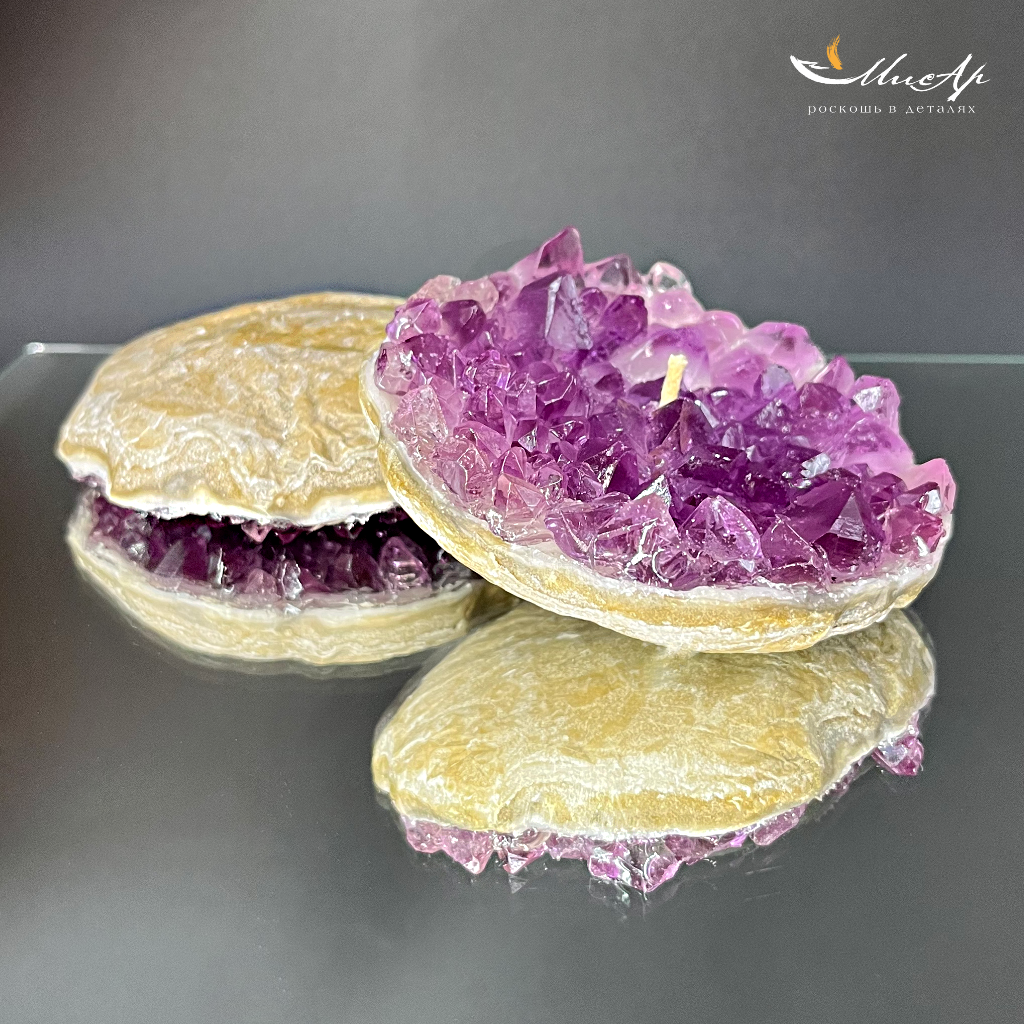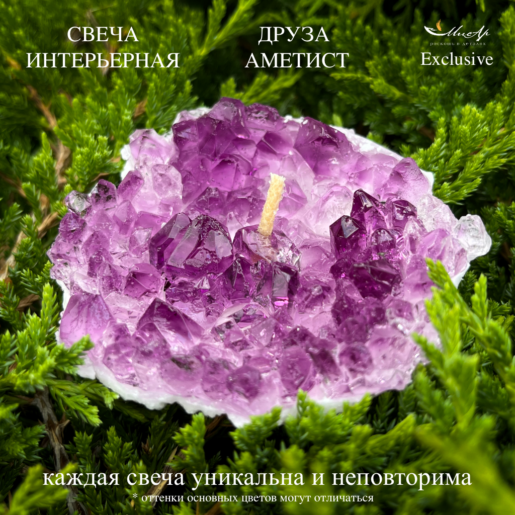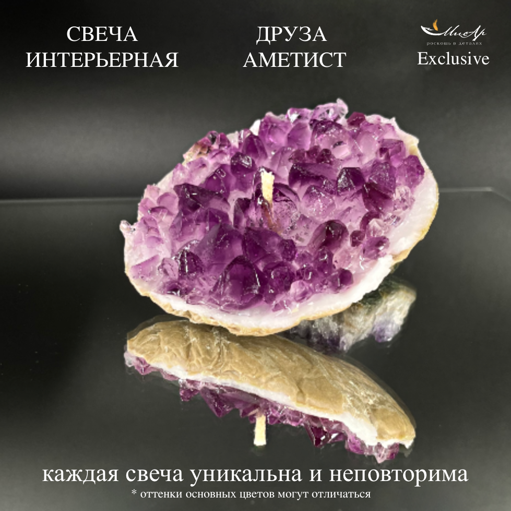 Свеча интерьерная декоративная "Друза" кристалл аметист, МисАр, гелевая, фиолетовая интересное:
