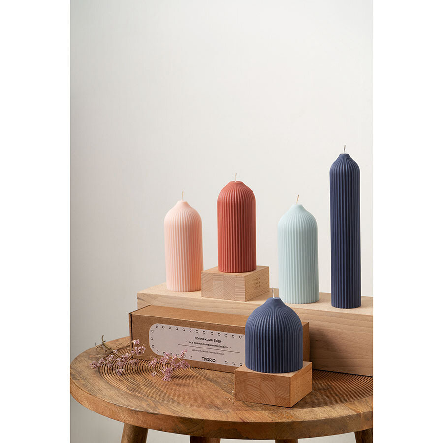 Свеча декоративная Tkano, коллекция Edge, синий цвет, 10,5 см