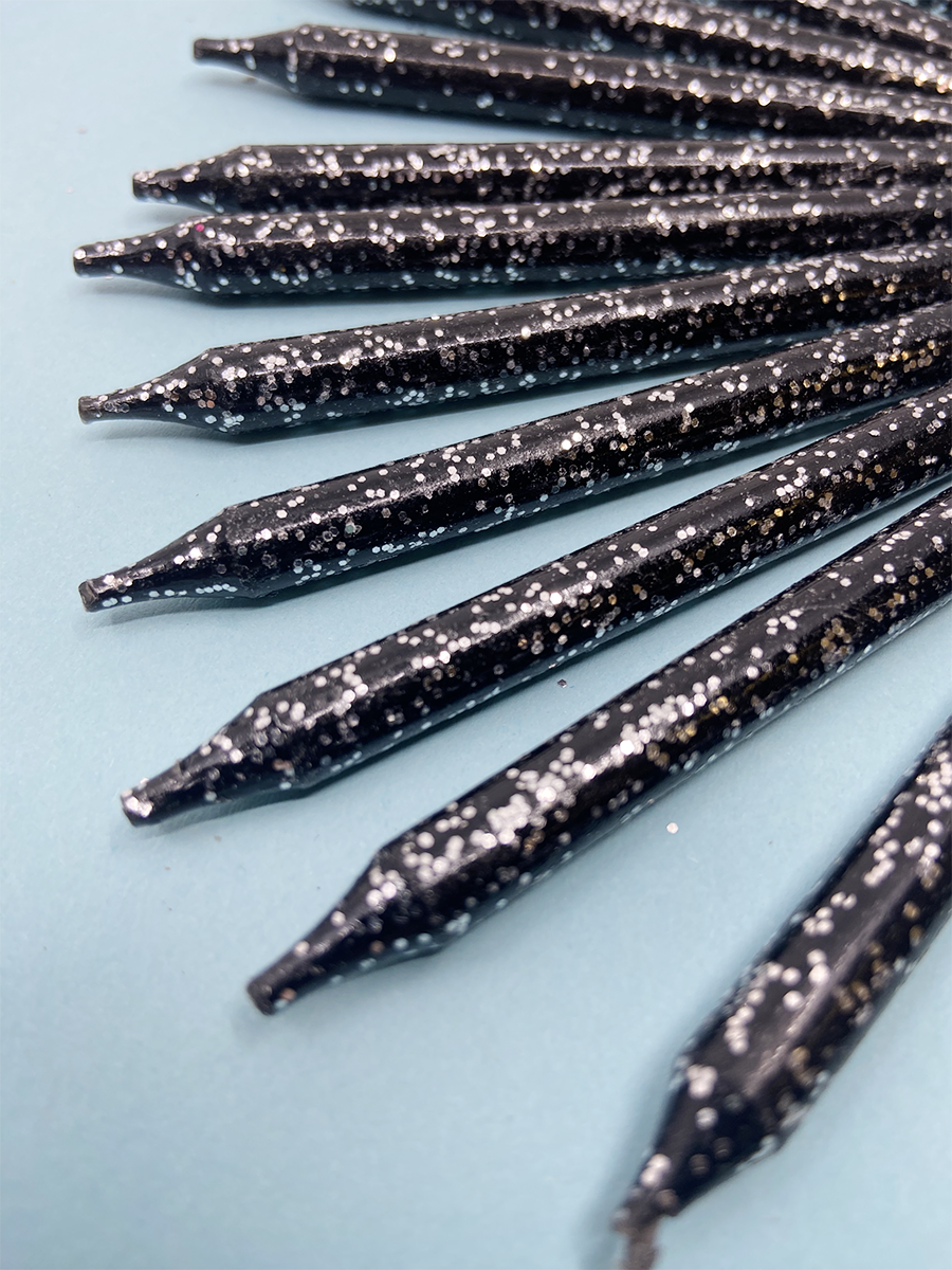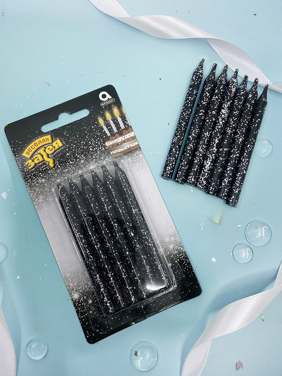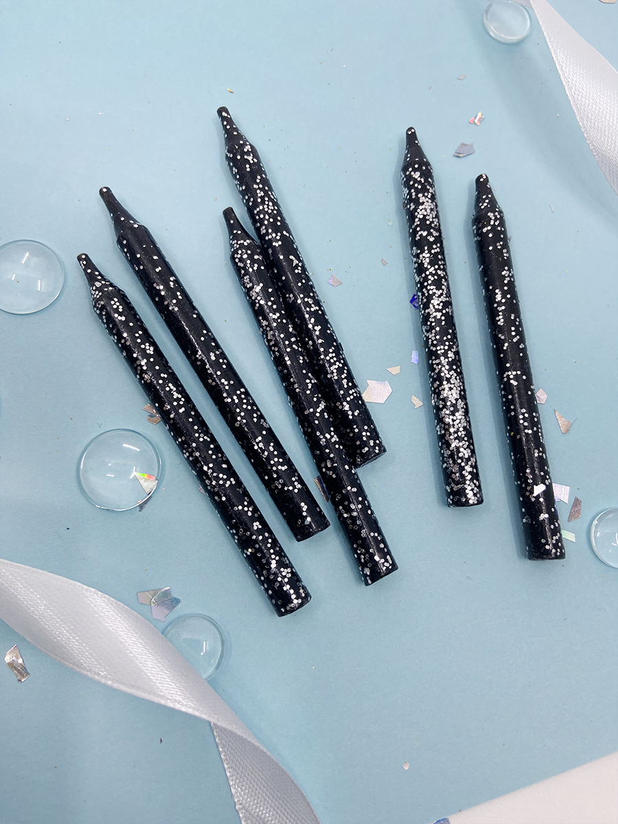 Свечи для торта классические, черные, с блестками, 13,5 см, 24 шт