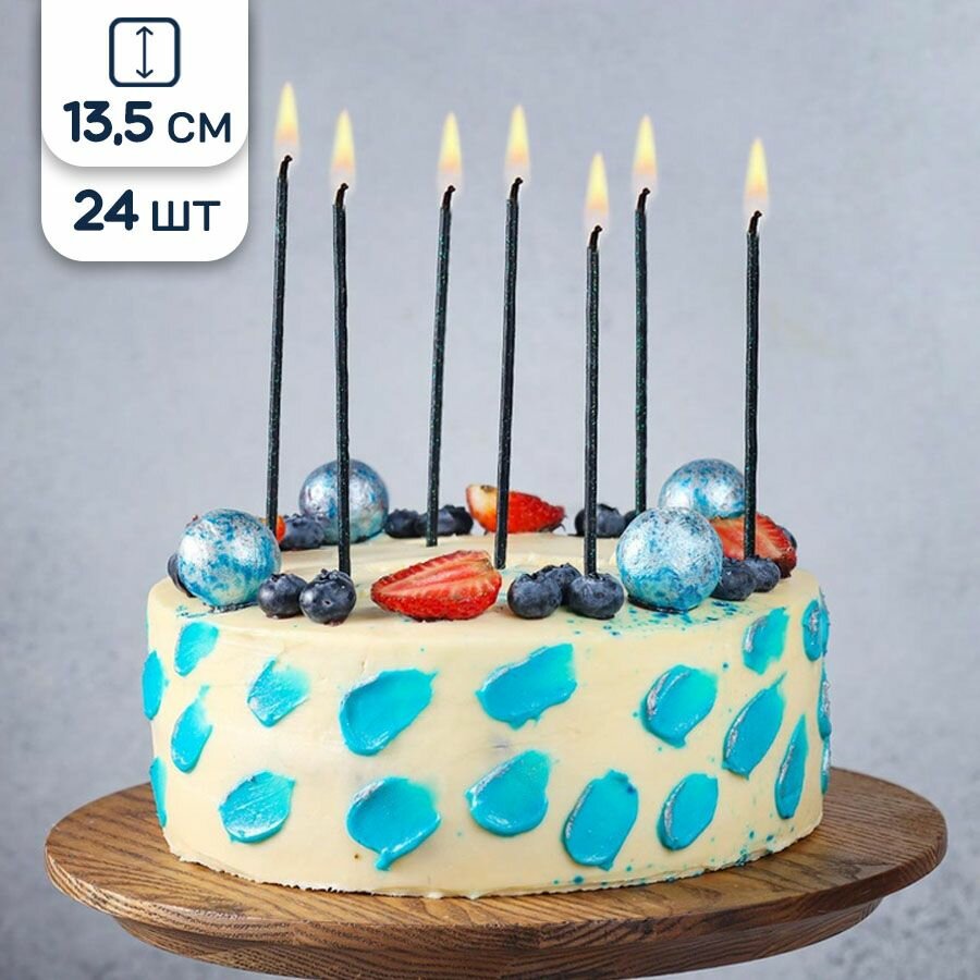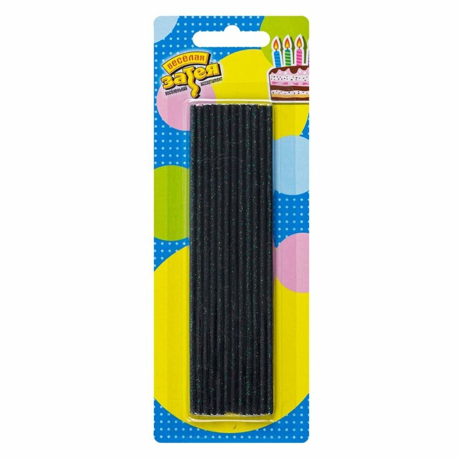 Купить Свечи для торта классические, черные, с блестками, 13,5 см, 24 шт