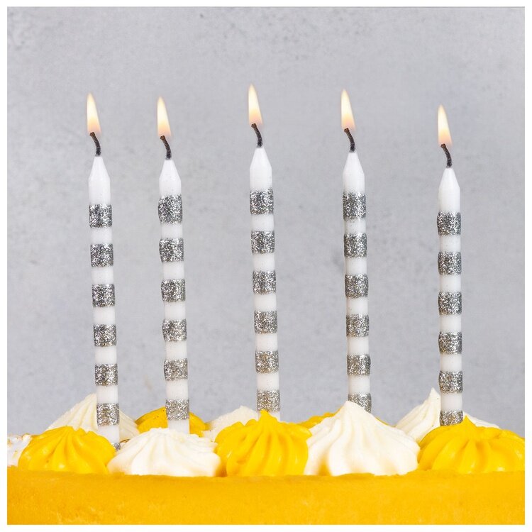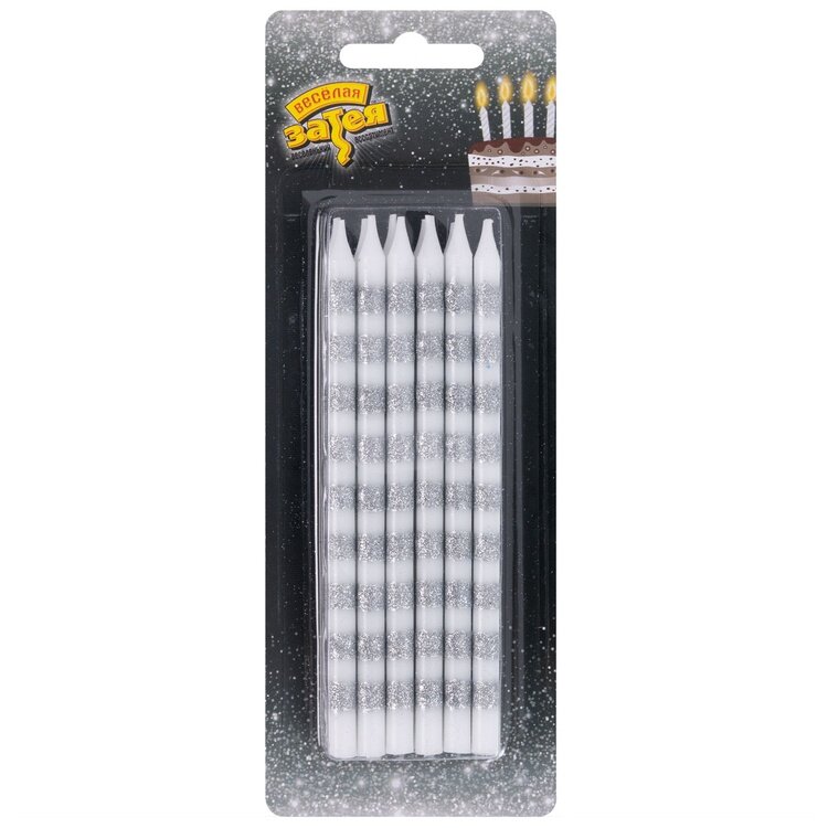 Купить Свечи для торта белые с серебряными полосами, 12 см, 12 штук