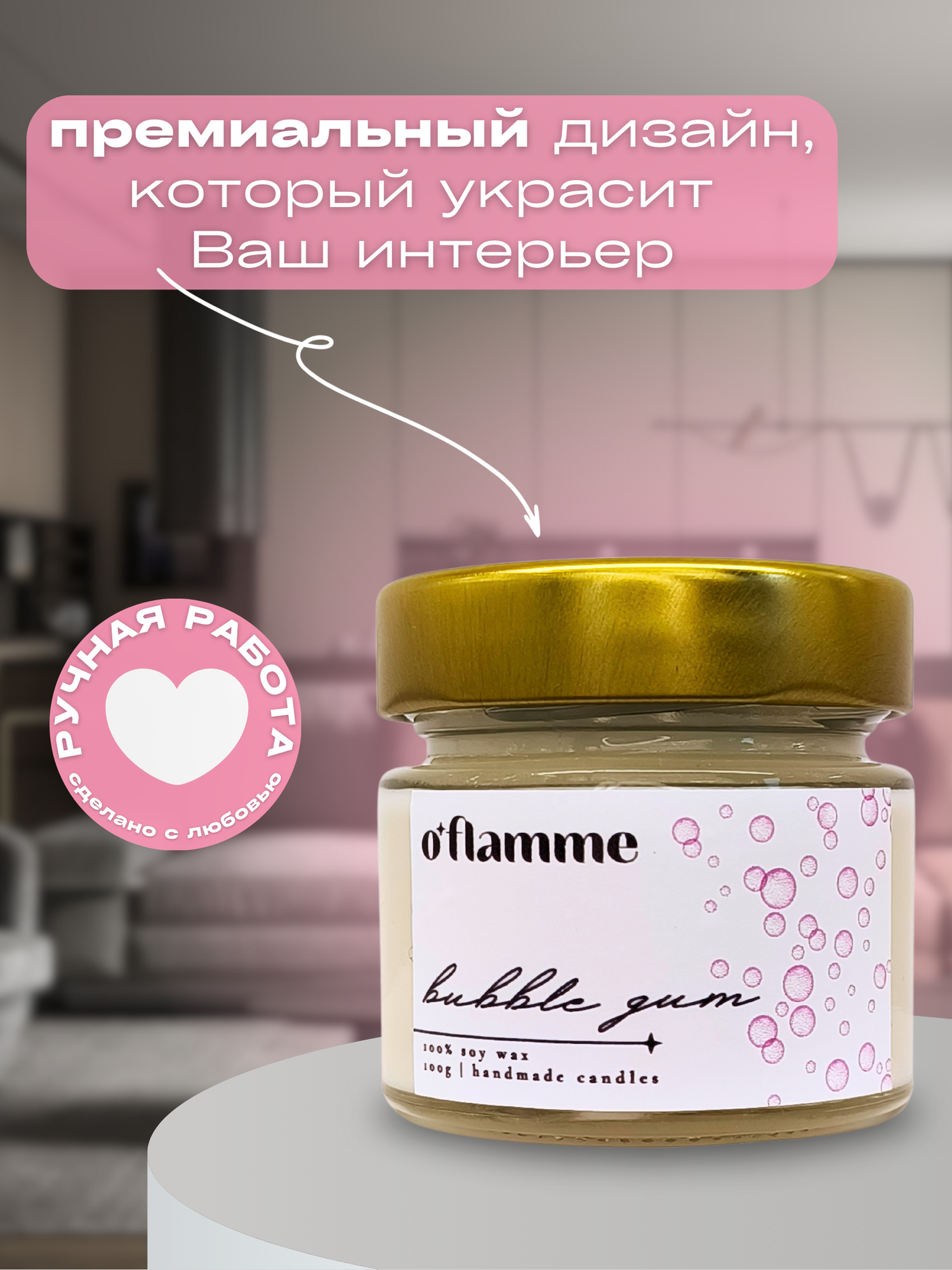 СохранитьИнтерьерная ароматическая свеча для дома O'Flamme. "Бабл гам". интересное: