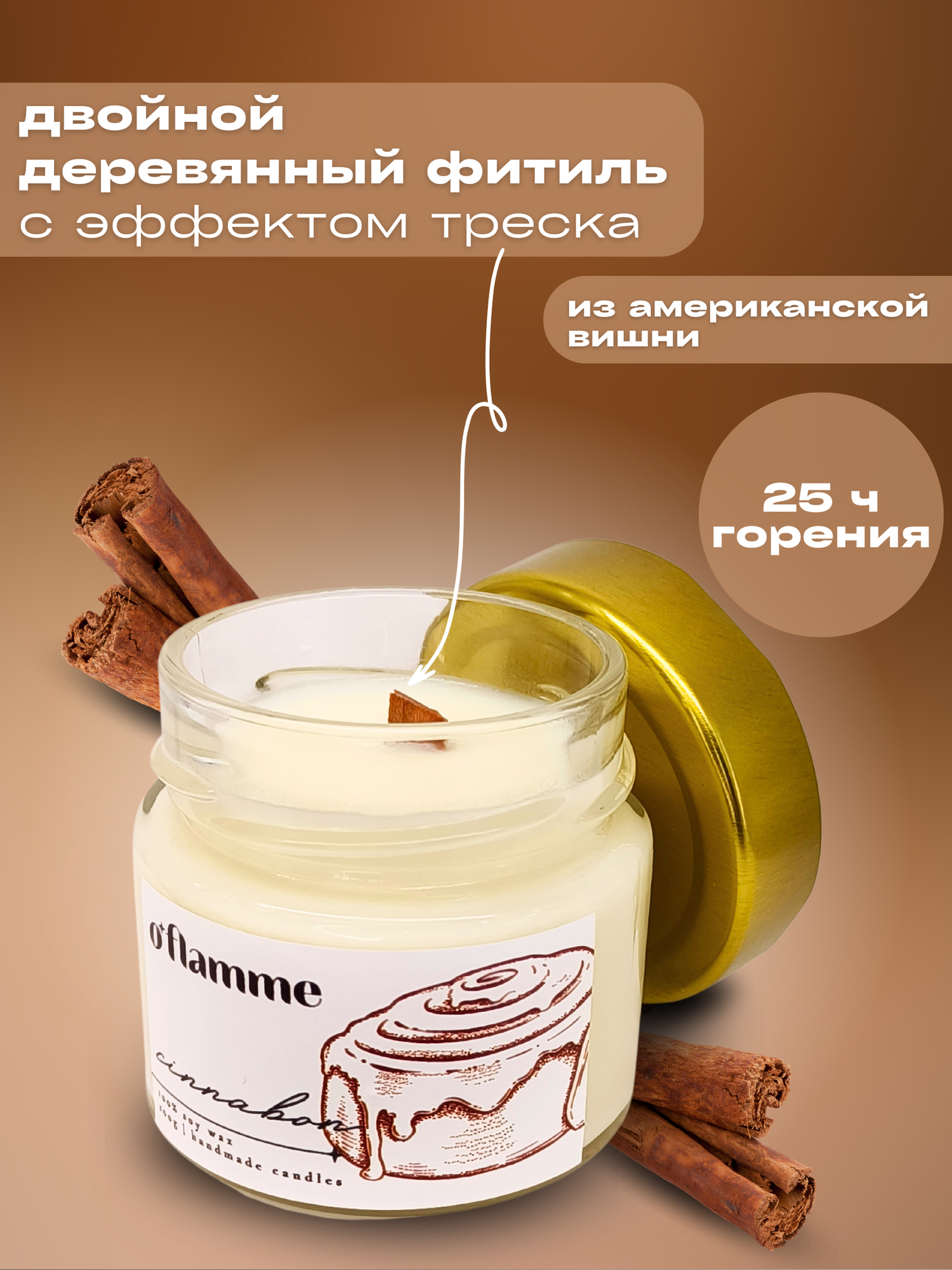 СохранитьИнтерьерная ароматическая свеча для дома O'Flamme. " Синнабон" интересное: