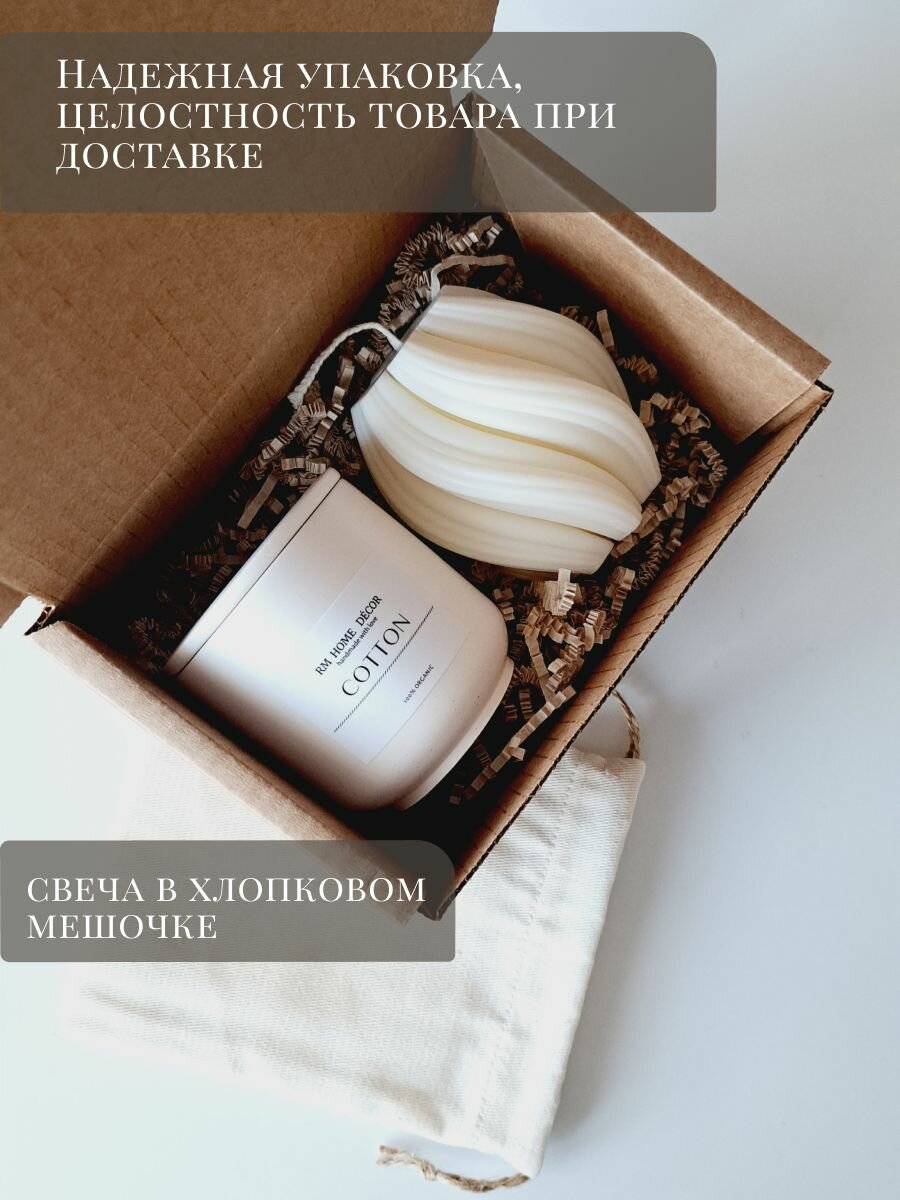 Подарочный набор ароматических свечей, свеча ароматическая декоративная с деревянным фитилем в гипсе с ароматом "ХЛОПОК" и интерьерная "ШАР", 2 шт. интересное: