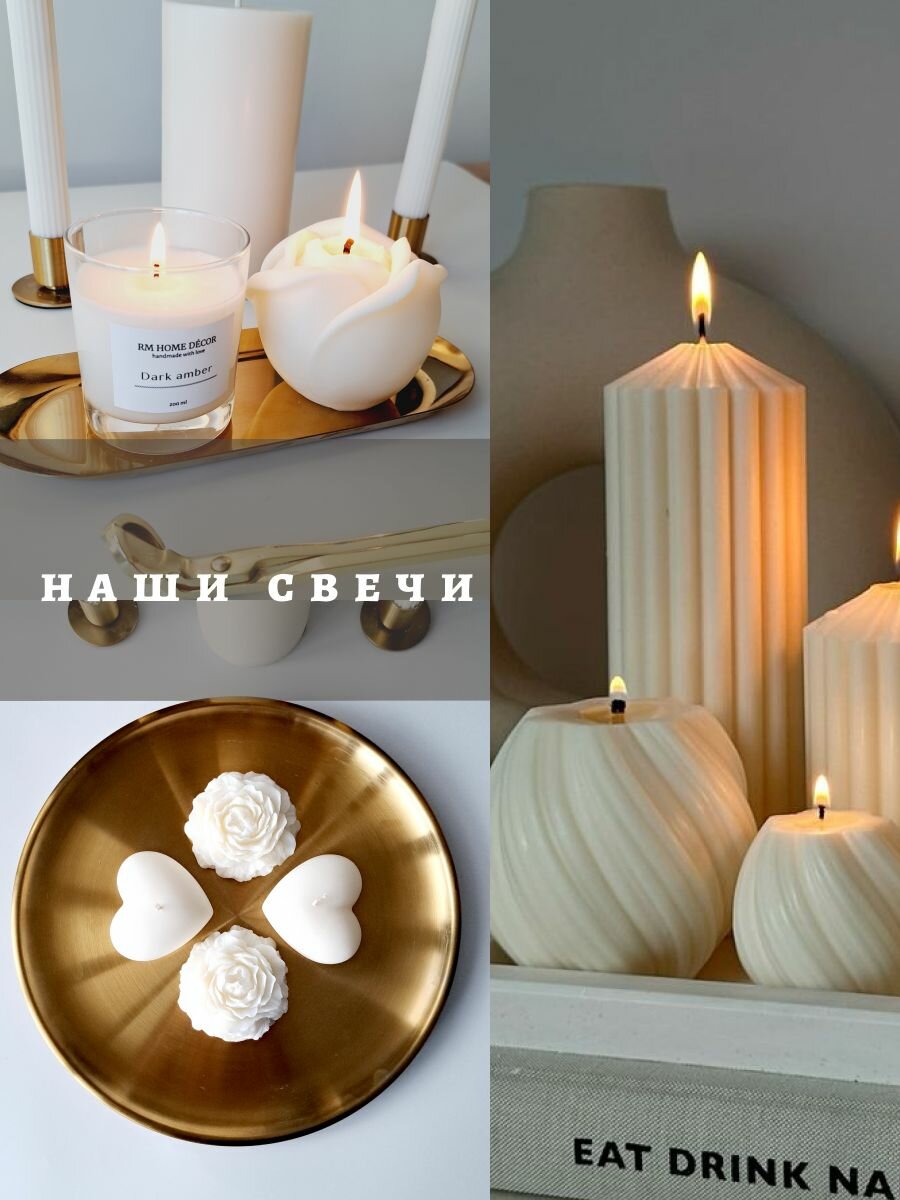 Подарочный набор свечей, Свеча интерьерная декоративная "РОЗА" и ароматическая свеча "Dark Amber", 2шт