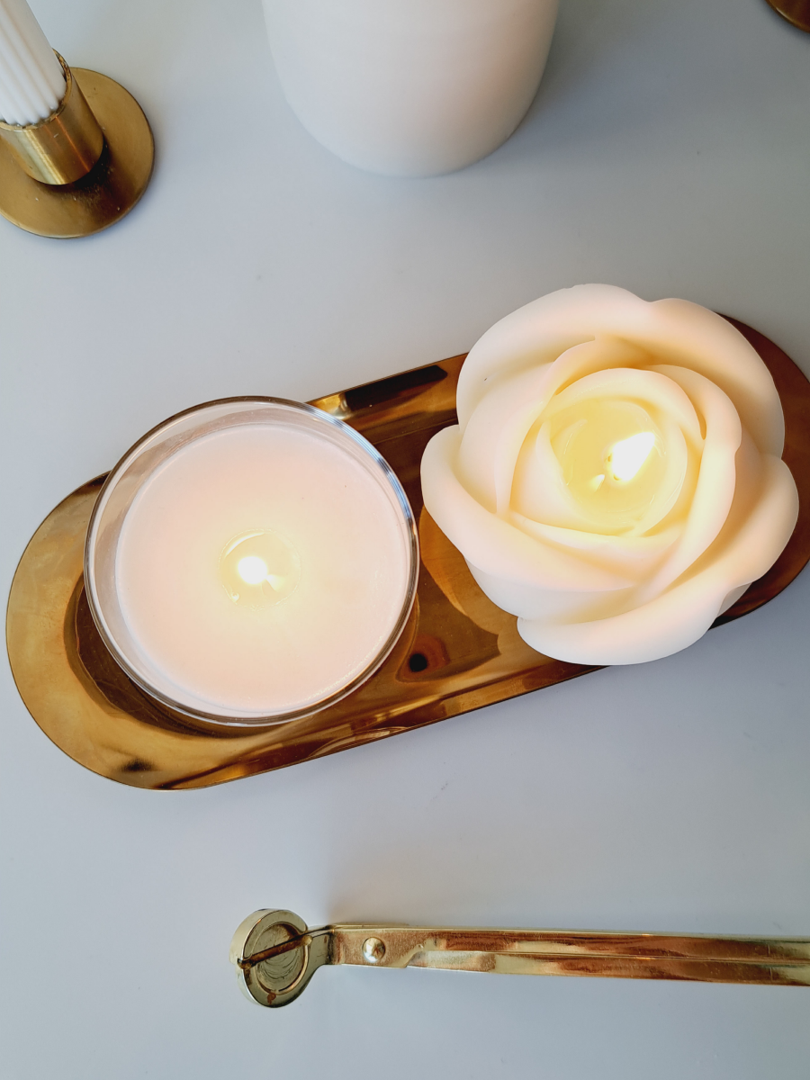 Купить Подарочный набор свечей, Свеча интерьерная декоративная "РОЗА" и ароматическая свеча "Dark Amber", 2шт