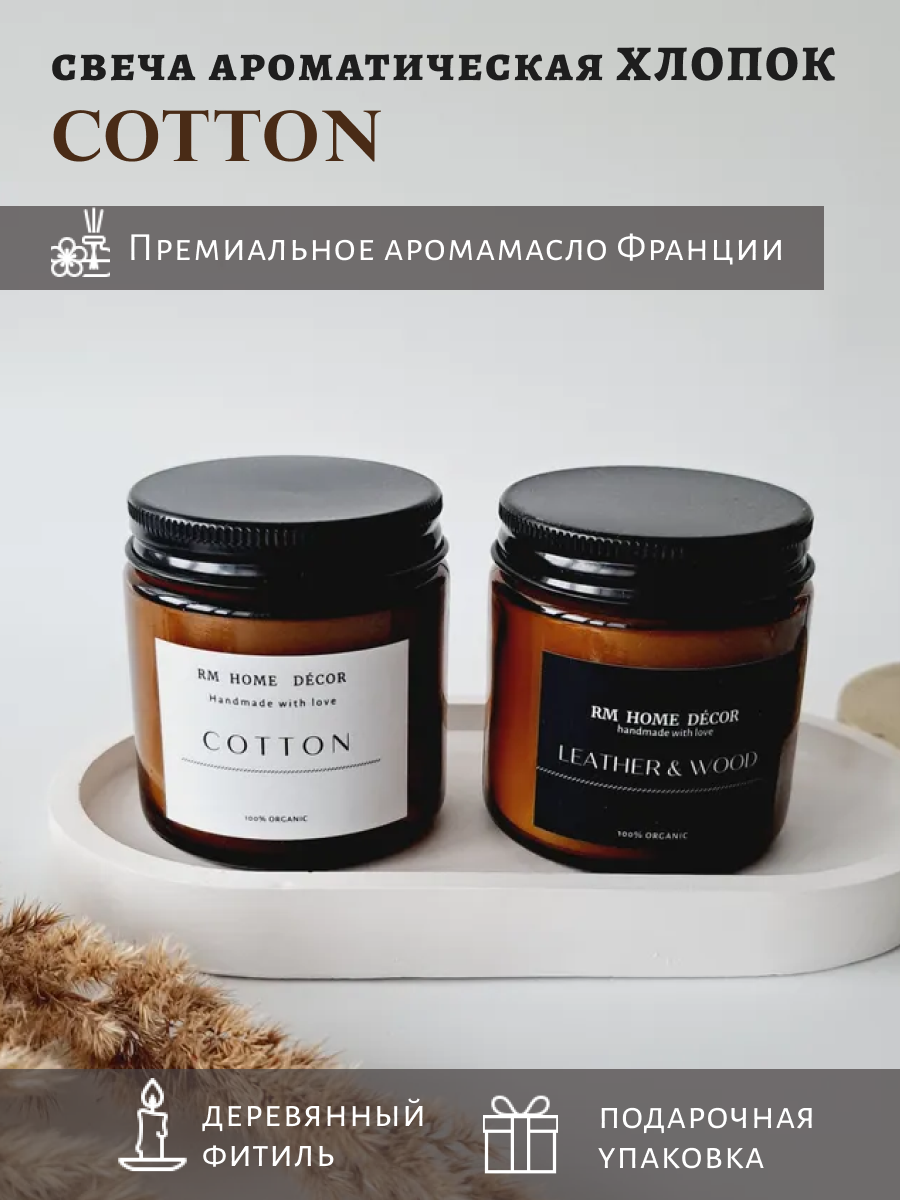 Свеча ароматическая "Cotton", свеча хлопок, свеча с деревянным фитилем, свеча, 100мл, для женщин, свеча пало санто интересное: