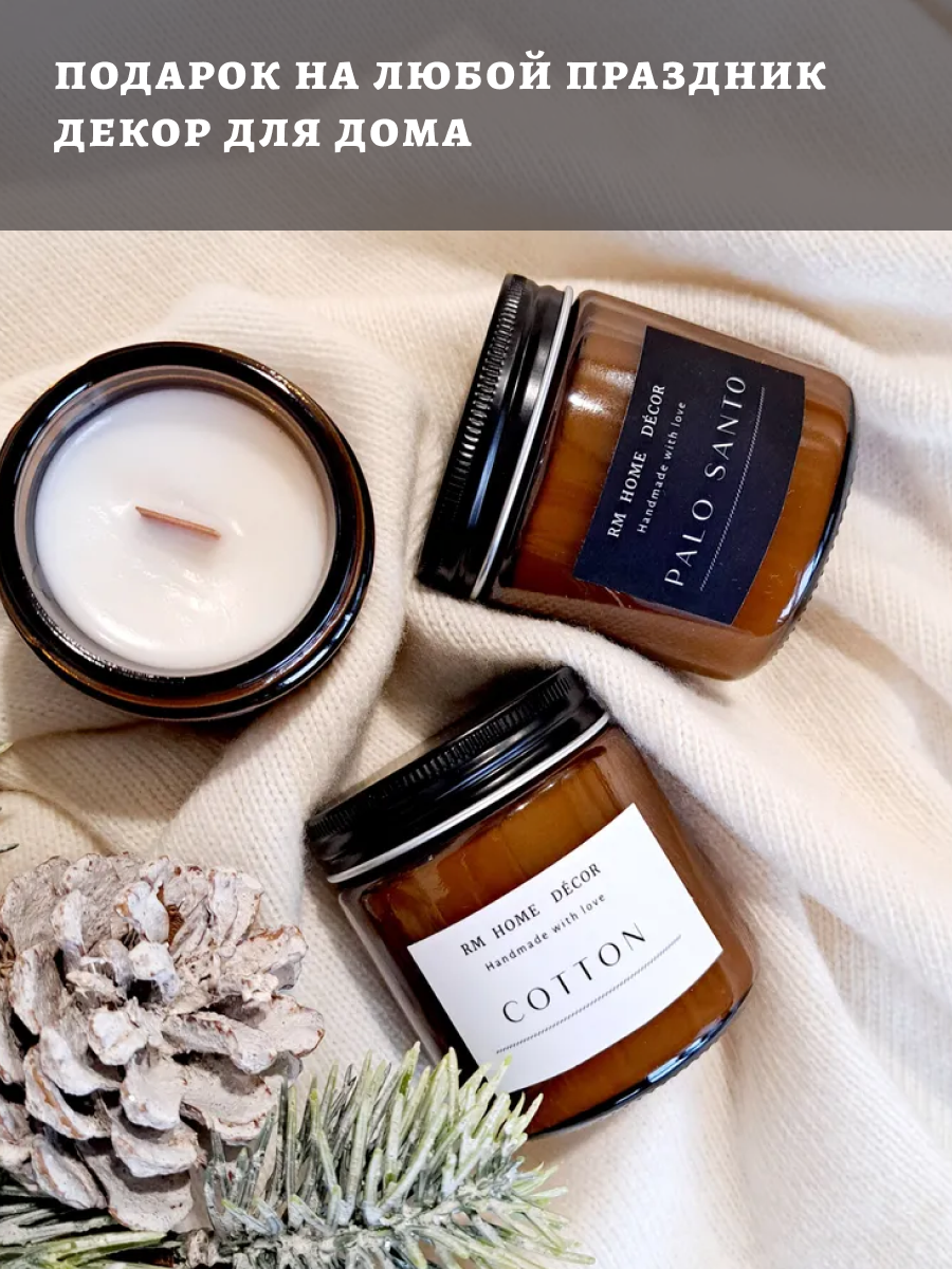 Свеча ароматическая "Cotton", свеча хлопок, свеча с деревянным фитилем, свеча, 100мл, для женщин, свеча пало санто