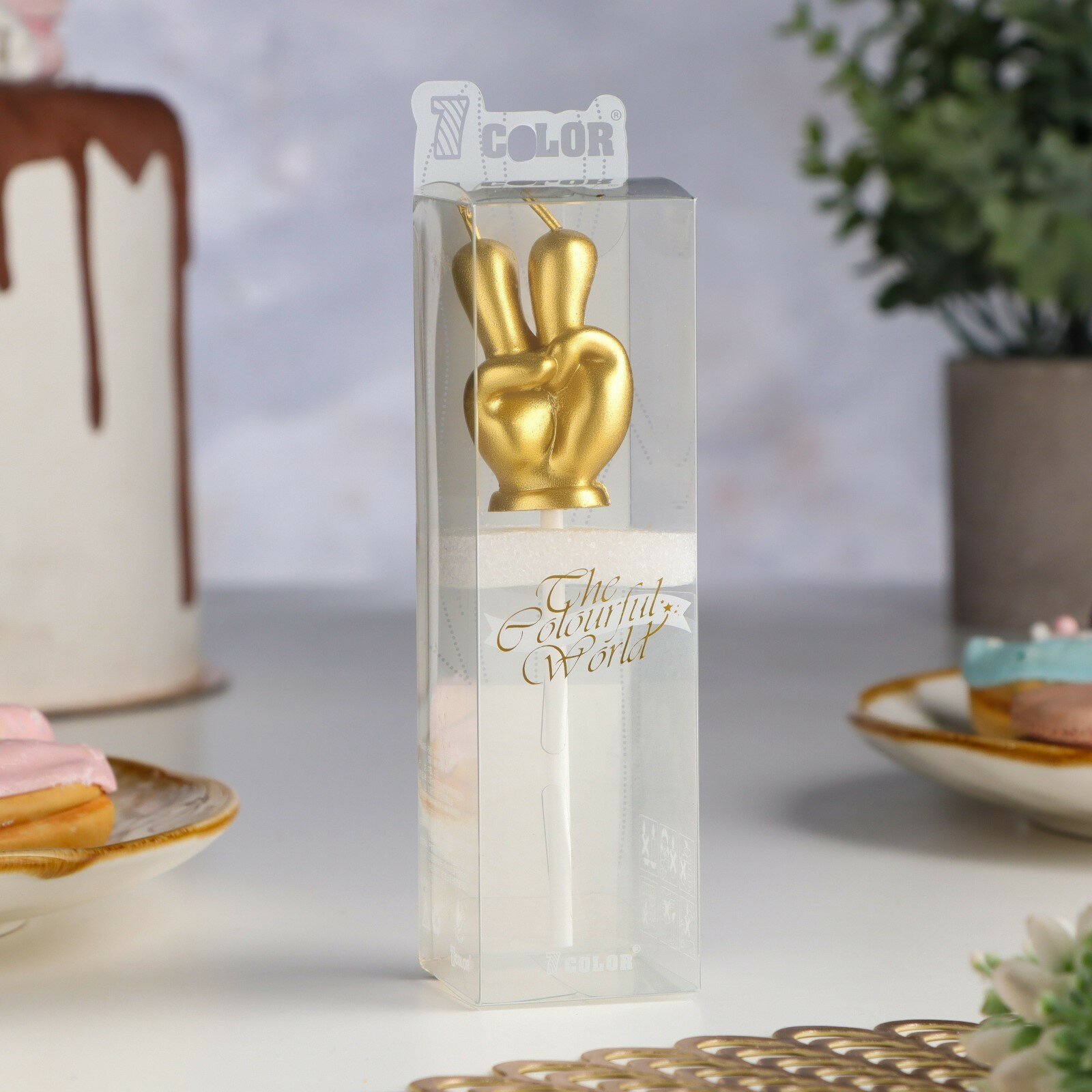 Свеча для торта стеариновая Riota Цифра 7, Розовое золото, 4,5 см, 1 шт.