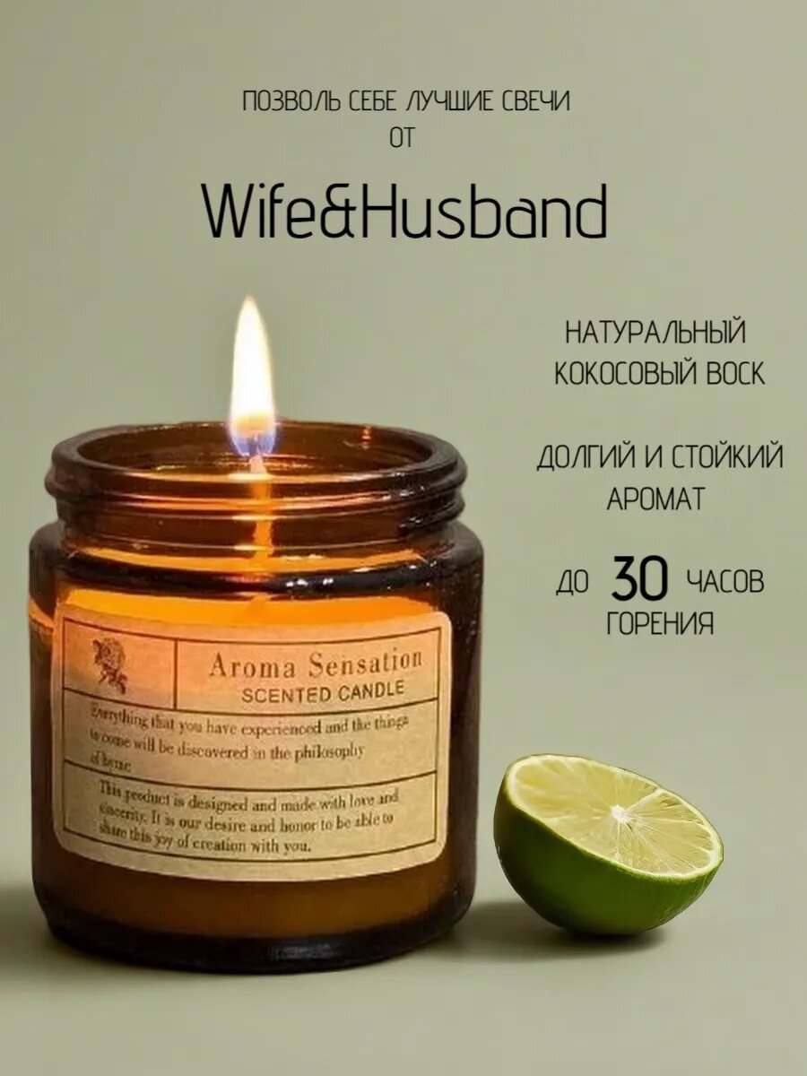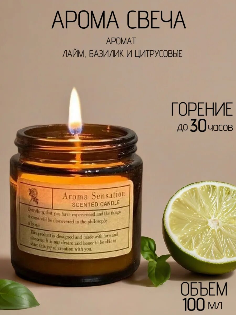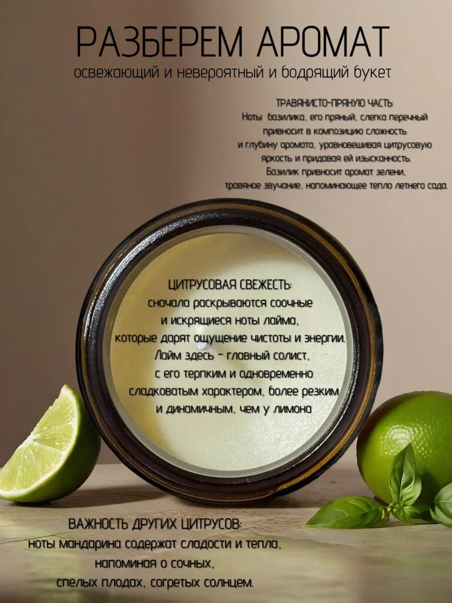 Свеча "Лайм, базил и цитрус", кокосовый воск, 100 мл, 20 ч горения интересное: