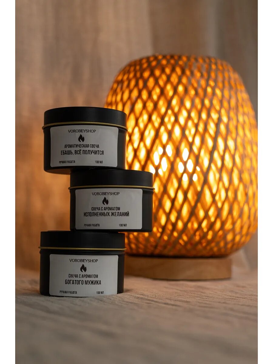 Свеча Vorobeyshop с ароматом "Исполненных желаний", кокосовый воск, 6х6 см интересное: