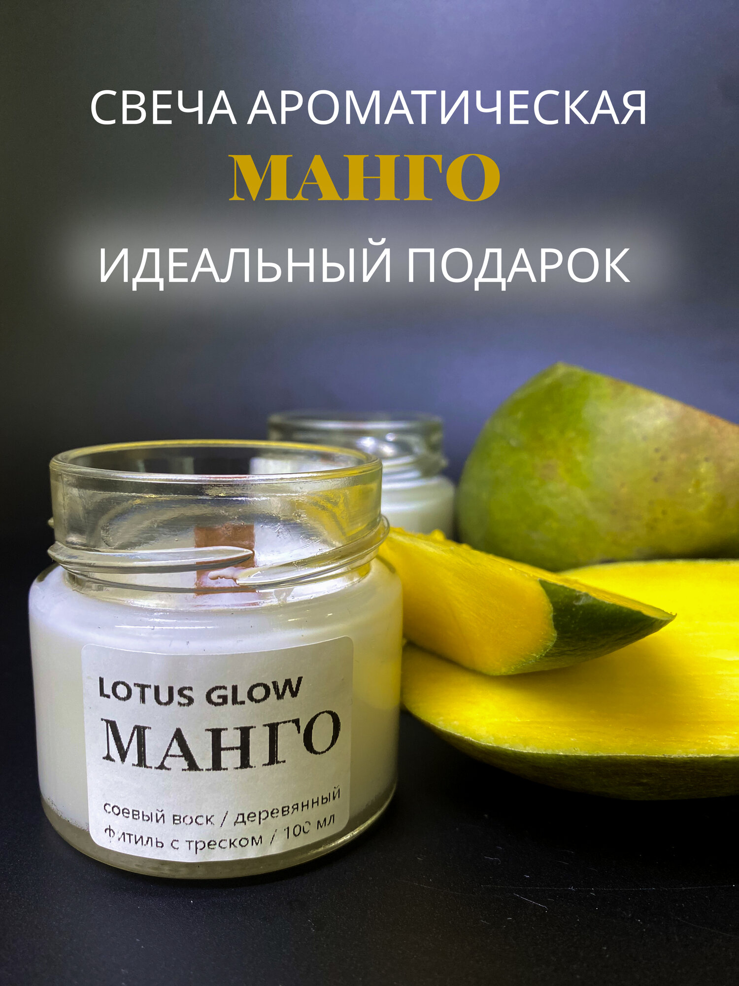 Ароматические свечи Lotus Glow "Манго", интерьерные, восковые, 20 ч горения