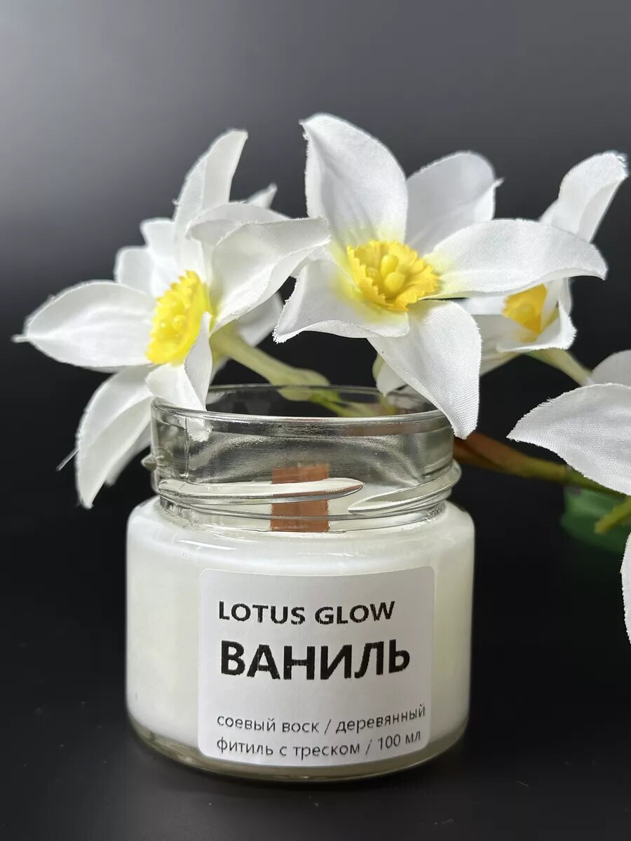 Купить Свеча Lotus Glow, ваниль, круглая, 20 ч горения, восковая, интерьерная, дымный аромат