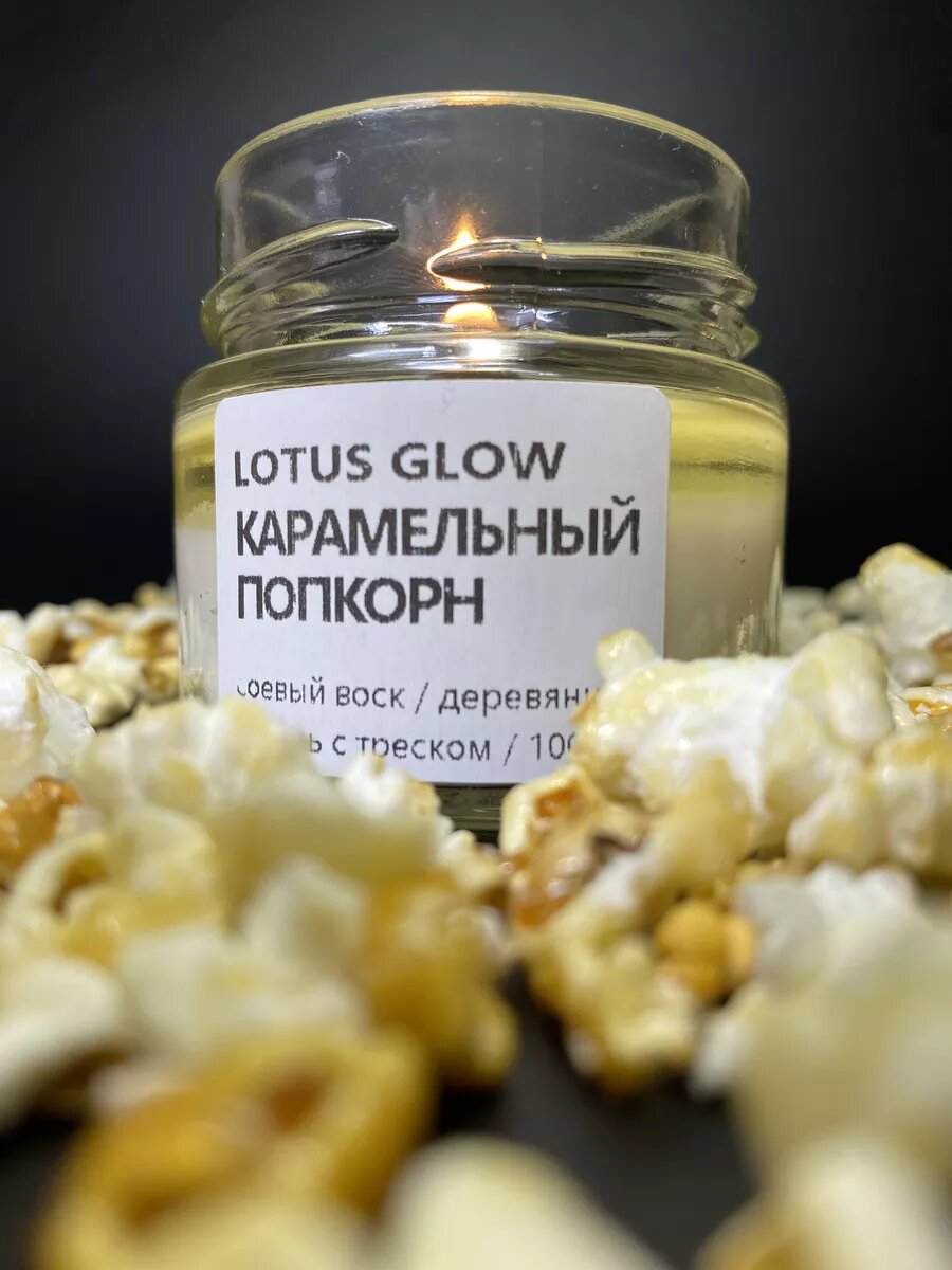 Свечи ароматические для дома в подарок подруге, маме аромат карамельный попкорн, натуральная, восковая
