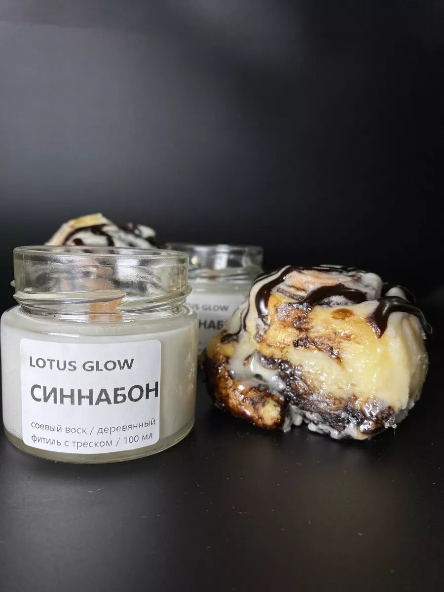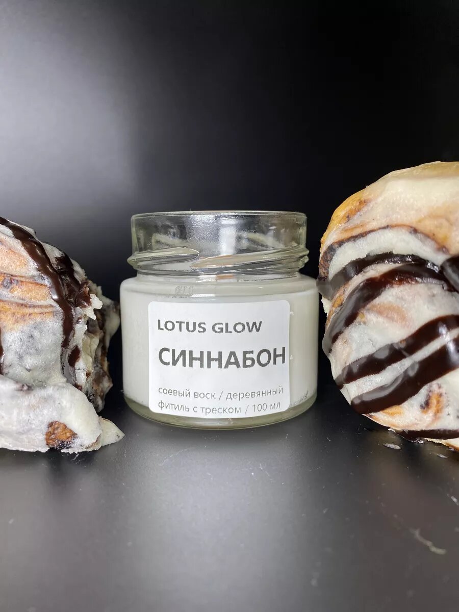 Купить Свеча Lotus Glow "Синнабон", ароматическая, интерьерная, восковая, круглая
