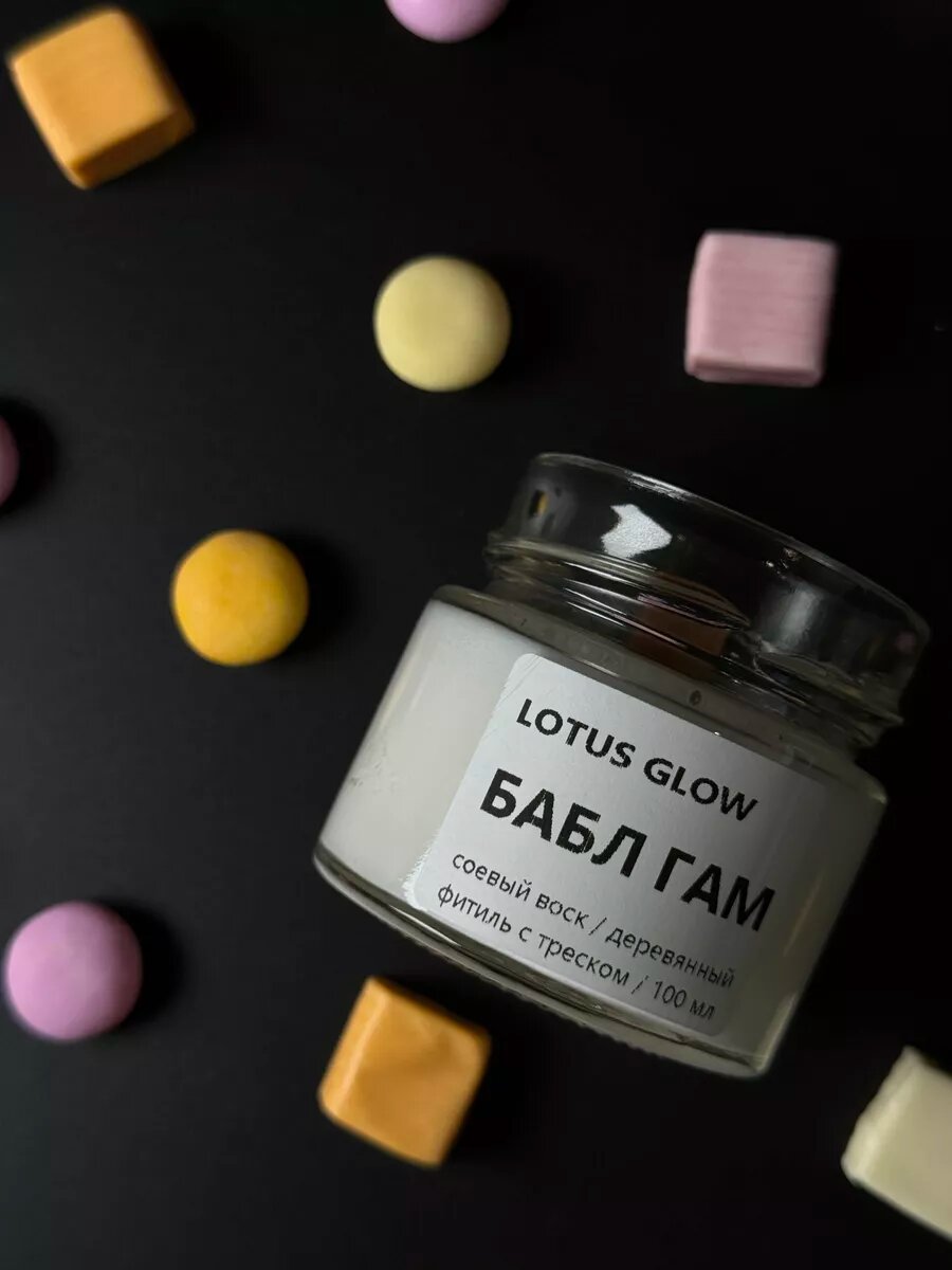 СохранитьСвеча Lotus Glow, ароматическая, для дома, восковая, интерьерная, круглая, аромат Бабл гам интересное:
