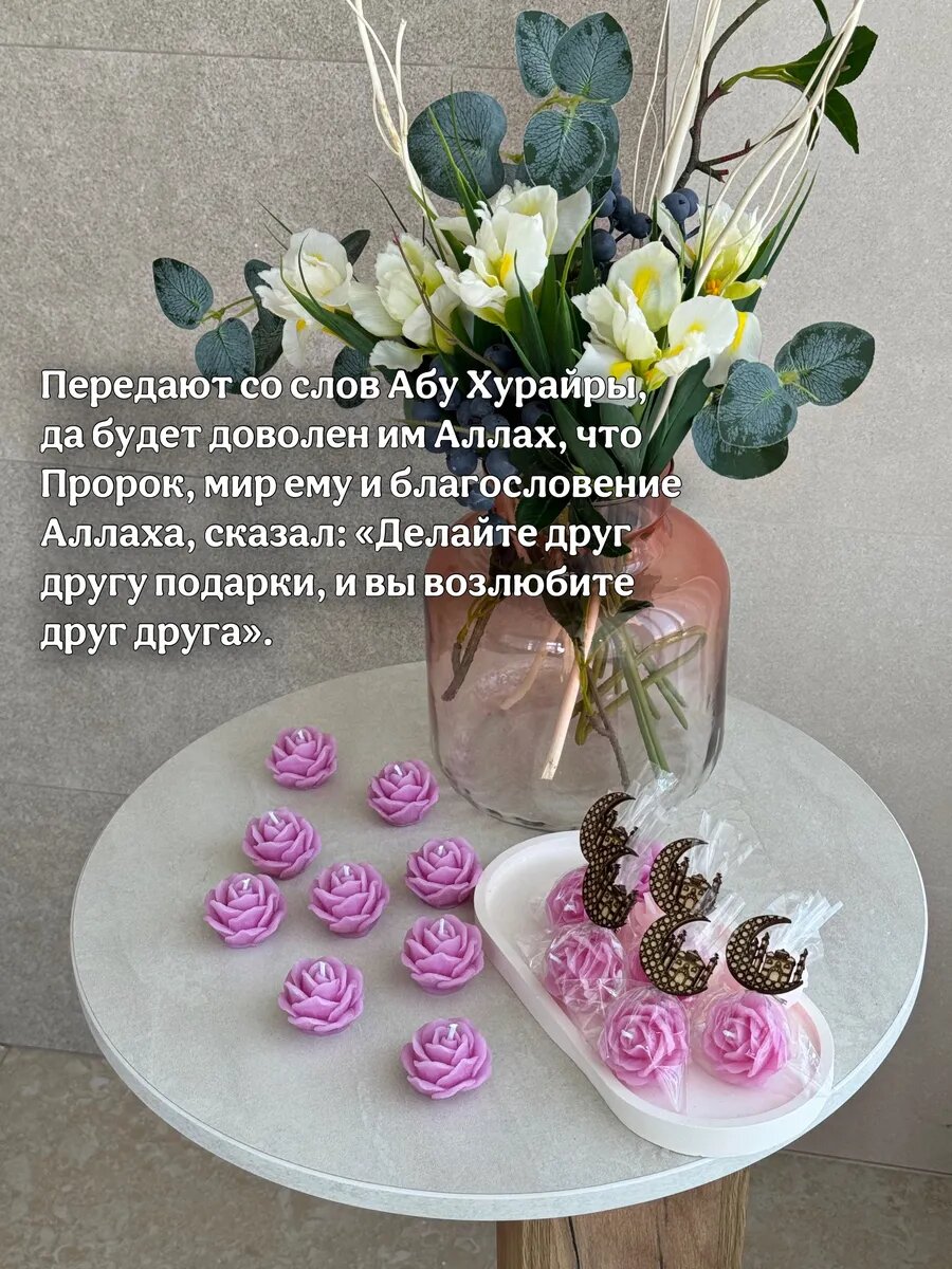 Подарочный набор - свечи в форме пионов, 1 набор из 5 шт, подарок близким на Рамадан