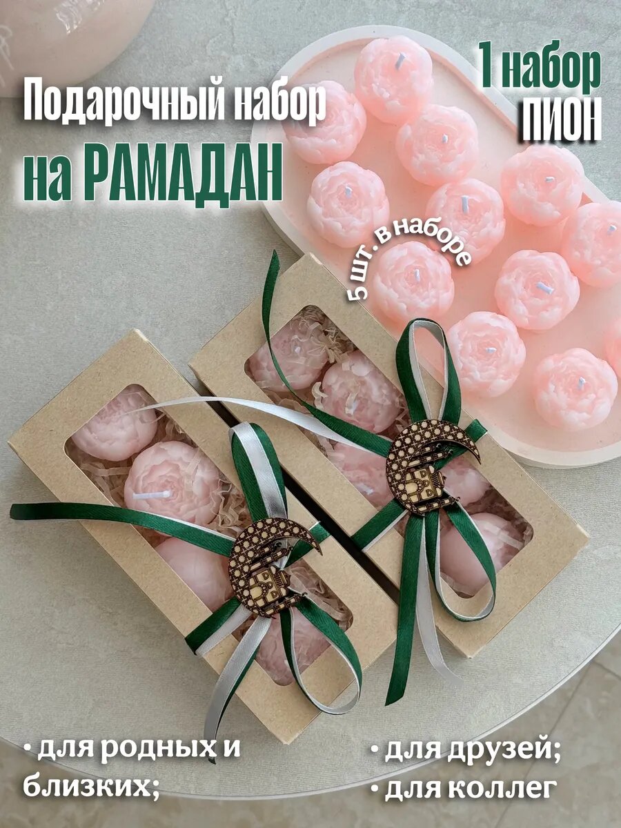 Купить Подарочный набор - свечи в форме пионов, 1 набор из 5 шт, подарок близким на Рамадан