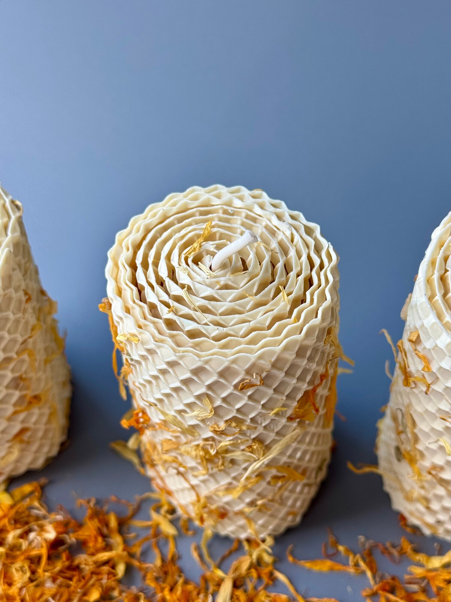 Купить Свеча из вощины ароматическая интерьерная с лепестками Календулы аромат Морская Соль и Орхидея