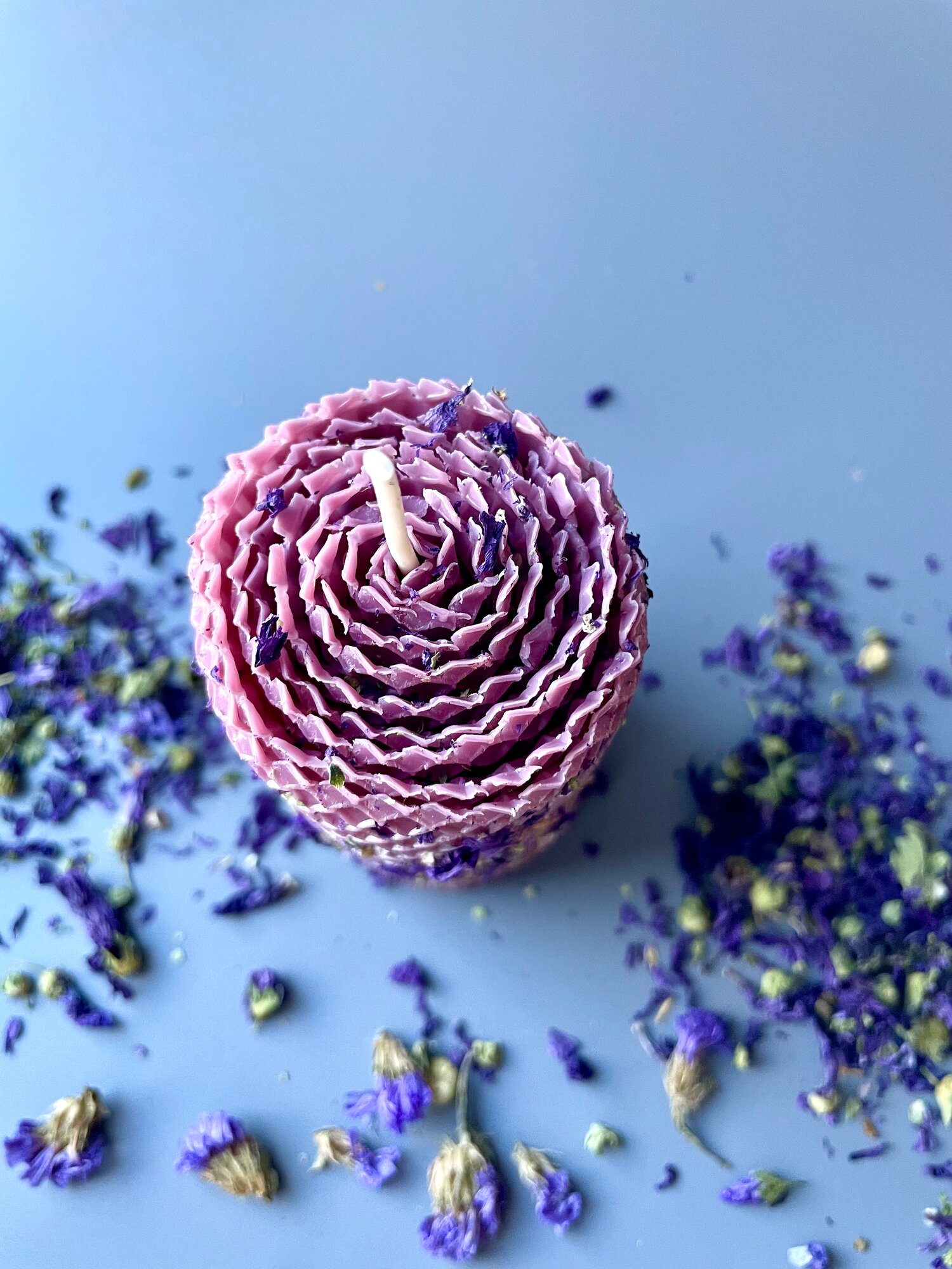 Купить Свеча из вощины ароматическая интерьерная с лепестками василька и мальвы аромат Английский Сад