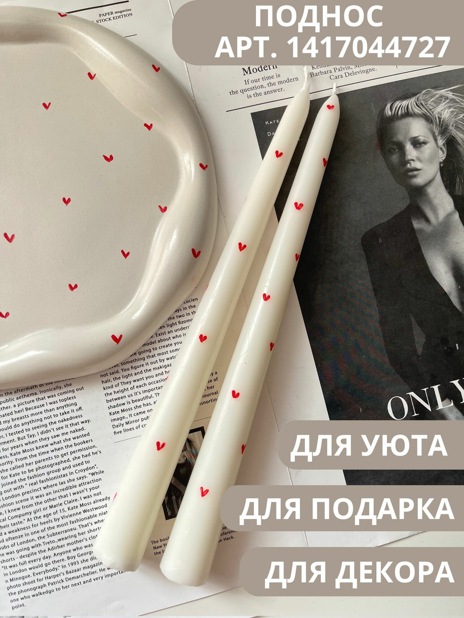Набор столовых свечей с рисунком сердечки / свечи с росписью / 2 шт. интересное: