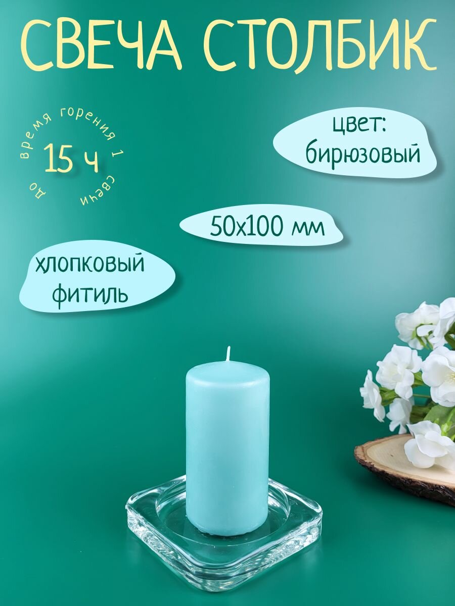 Свеча интерьерная БОЧОНОК бирюза для создания обстановки и уюта 70*120 без аромата 5070856