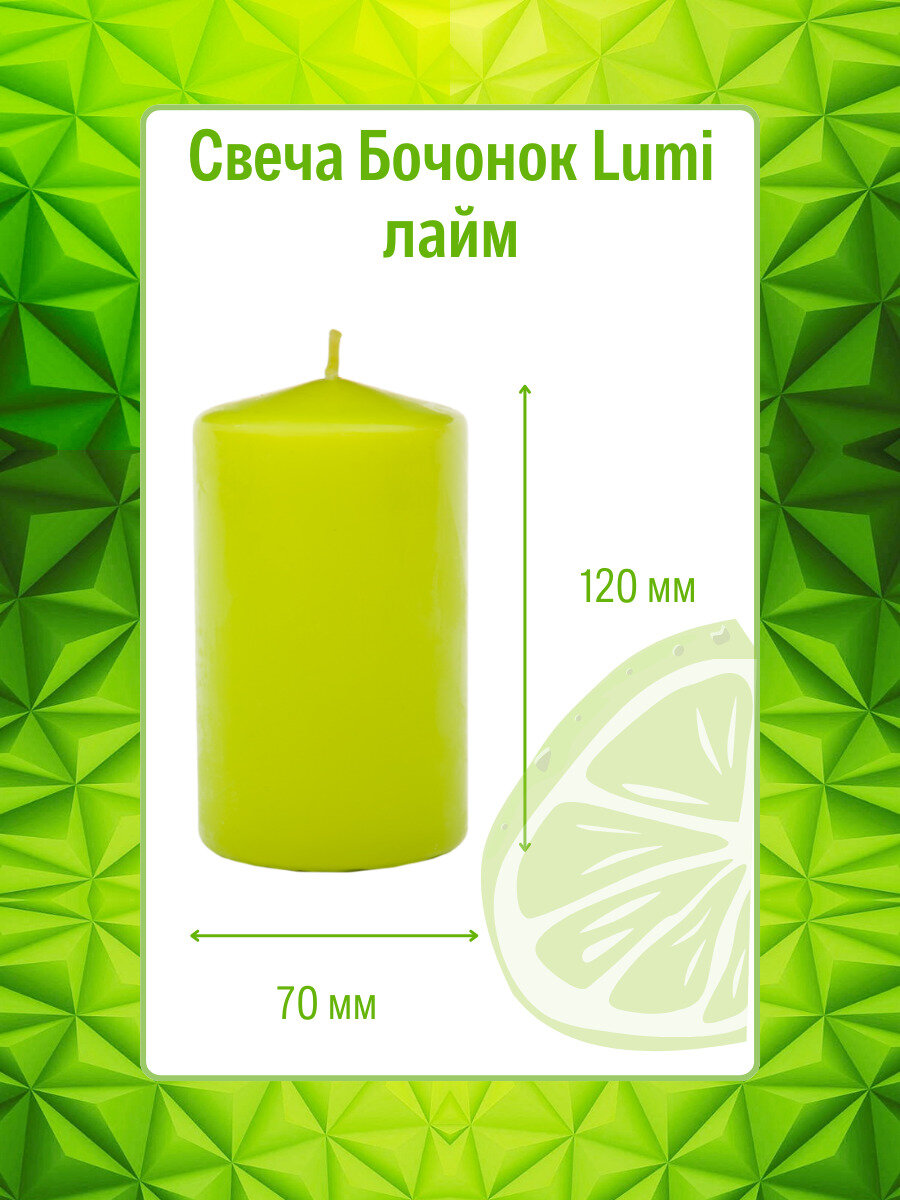 Свеча Бочонок Lumi 70х180 мм, цвет: лайм